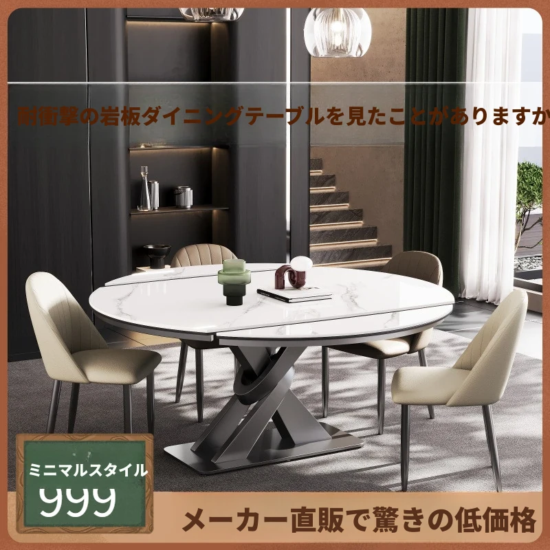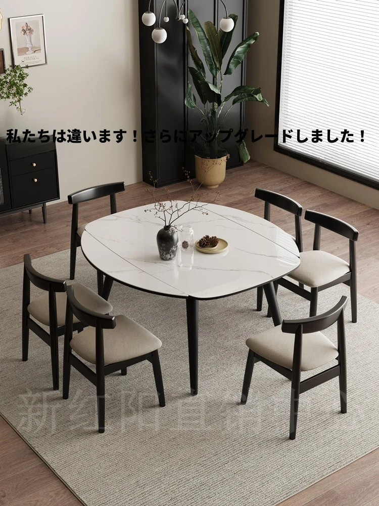 新疆送料無料!軽奢モダンなシンプルデザインの岩板ダイニングテーブル&チェアセット。おしゃれで機能的な折りたたみ&伸縮式、狭いお部屋にもぴったり!家庭用に最適なアイテムです。