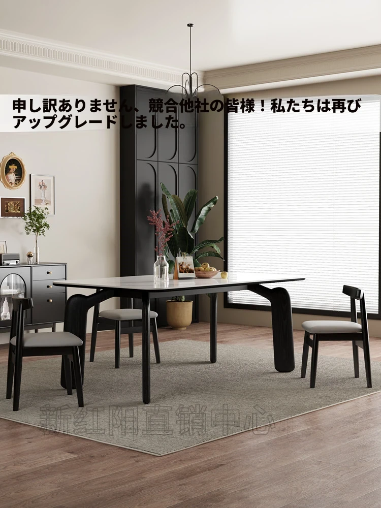 モダンミニマリストの岩板ダイニングテーブル&チェアセット|イタリアンシンプル&北欧スタイル|高級感溢れる実木製長方形ブラックテーブル|おしゃれで使いやすい家庭用食卓
