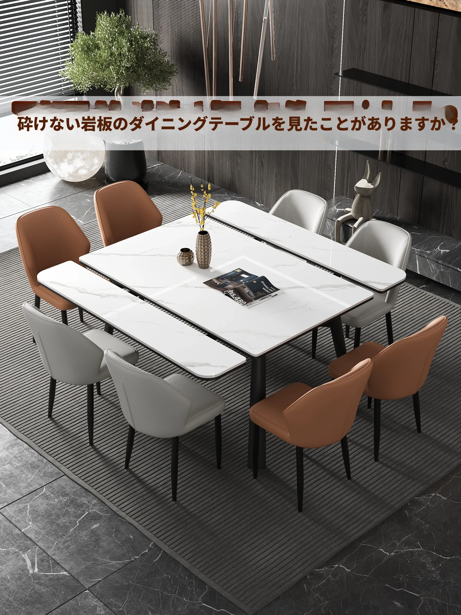現代的でシンプルなデザインの岩板ダイニングテーブル&チェアセット!おしゃれで実用的、小さなスペースにもぴったりなアイデア満載のイタリアンラグジュアリー。おうちで特別なひとときを演出します。