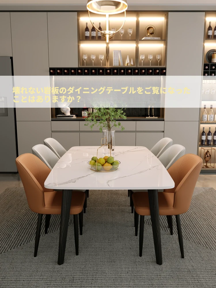 厚みのある実木脚と高強度の金属岩板を使用した、スタイリッシュな長方形ダイニングテーブル&チェアセット。小型住宅にも最適なイタリアンデザインで、洗練された食卓を演出します。