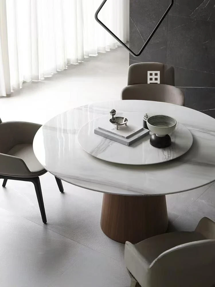 北欧スタイルのミニマリスト無垢材サークルテーブル - モダンでシンプルな家庭用レトロイタリアンラグジュアリー、回転プレート付きで使い勝手抜群!