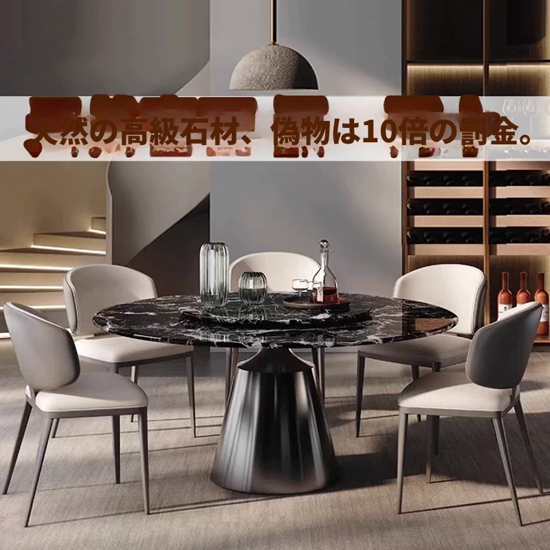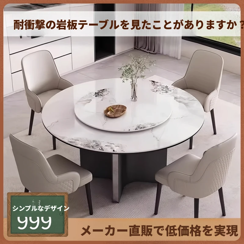 軽奢感溢れる岩板製の円形ダイニングテーブル - 大きな円卓、電動回転プレート付き、IHクッキングヒーター対応、鍋料理にも最適!ホテルや家庭での利用にぴったりなスタイリッシュなデザイン。