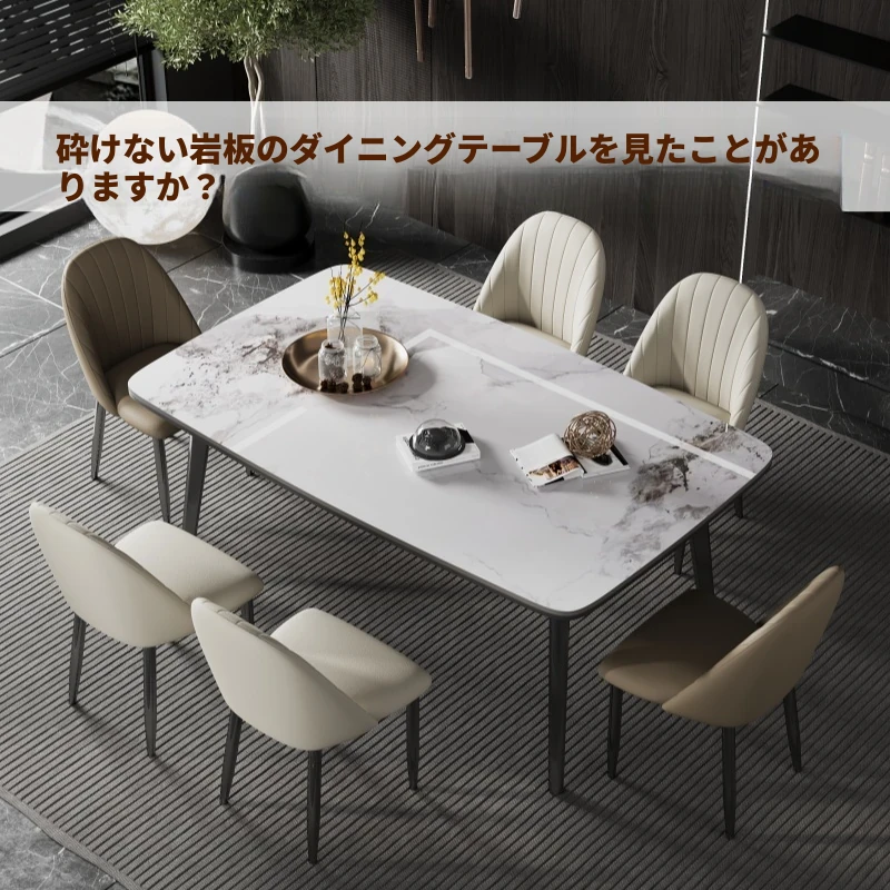 スタイリッシュな岩板ダイニングテーブル|小型住宅に最適|商談やオフィスの接待にぴったりなテーブル&チェアセット|四角形・円形デザインでスペースを有効活用!