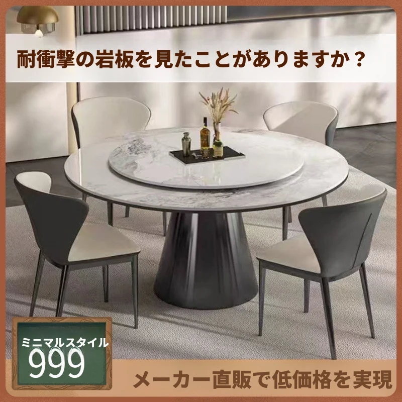 高級岩板使用!家用・ホテル向け電動回転式大円卓 - 火鍋&ビジネスに最適なラウンドダイニングテーブル!家族や友人との楽しい食事タイムを演出します!