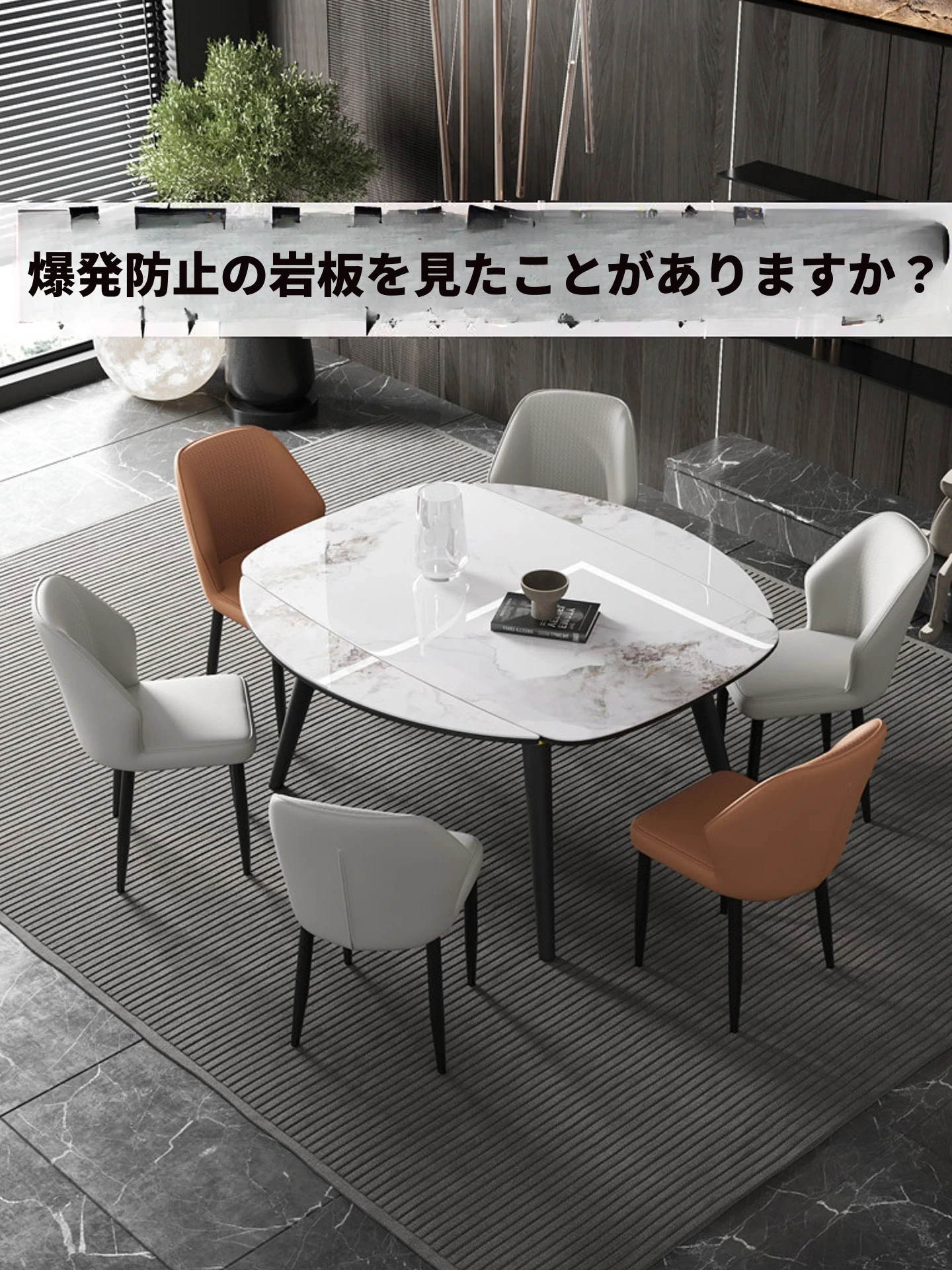 【壊れない岩板ダイニングテーブル】伸縮式折りたたみチェアセット、四角と丸の2WAYデザイン、コンパクトな小型住宅向け天然木製テーブル01