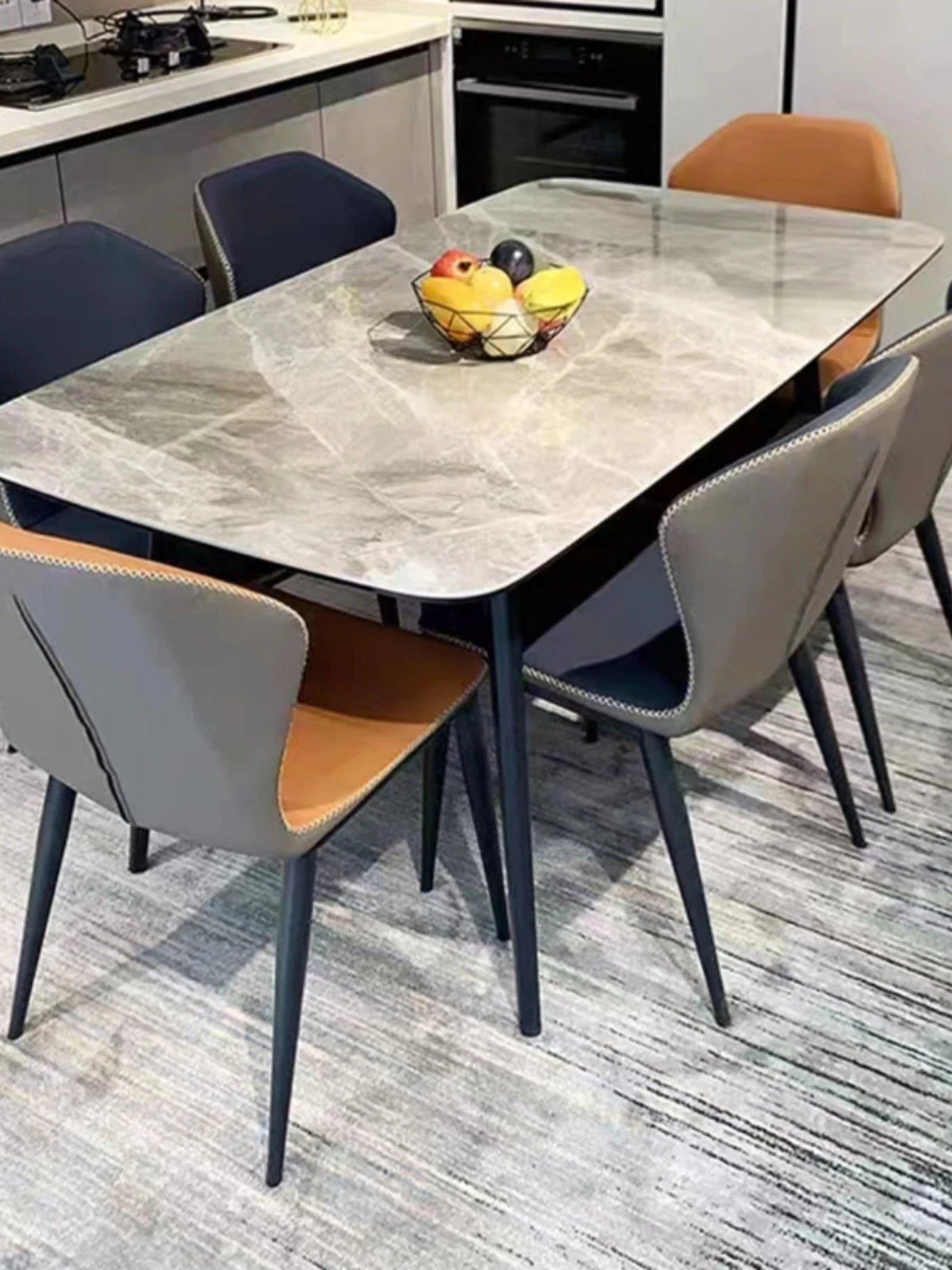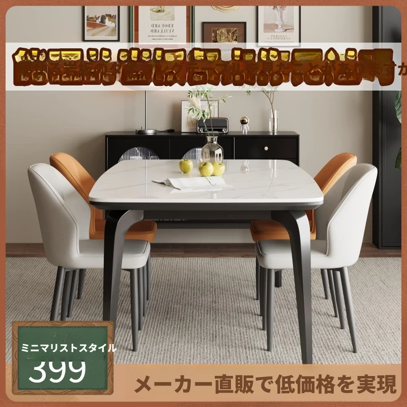 複合金属製のブランド岩板ダイニングテーブル&チェアセット - モダンでシンプルな長方形デザイン、小さな住まいにぴったりのイタリアンスタイル!おしゃれな空間を演出します。