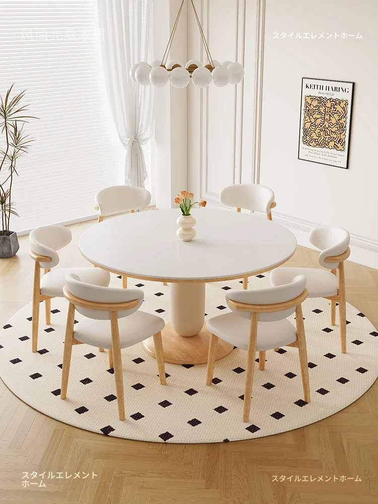 フランス風の天然木クリーム仕上げのラウンドテーブル&チェアセット - モダンでシンプル、北欧スタイルの小さなスペースに最適な丸型ダイニングテーブル!家庭用にもぴったり。