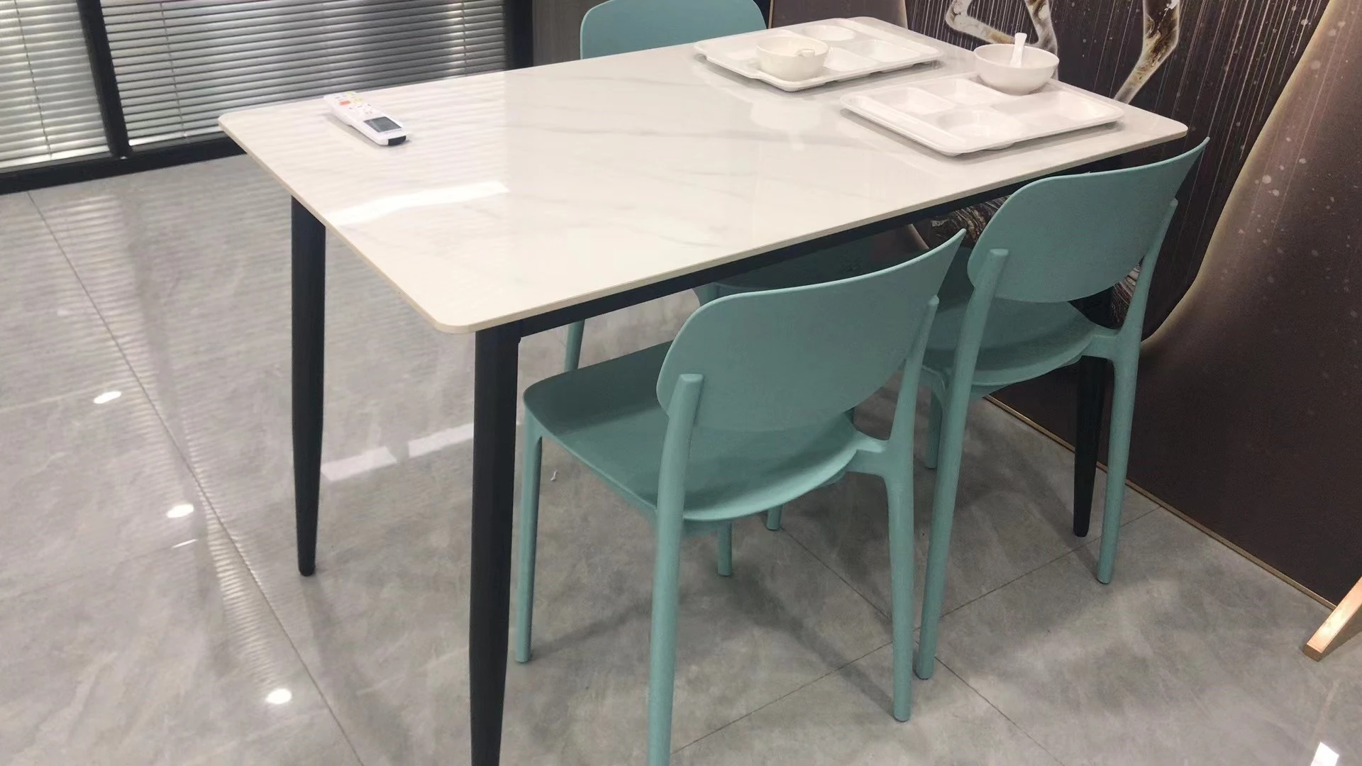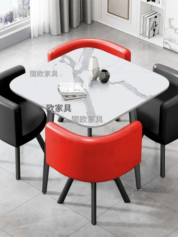 学校や社員食堂に最適!スタイリッシュな岩板テーブルと椅子のセット - カフェやレストランでの使用にぴったり。美味しいミルクティーや軽食を楽しむ空間を演出します。商業用飲食店に最適なデザインです!