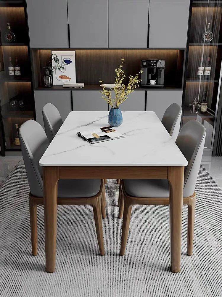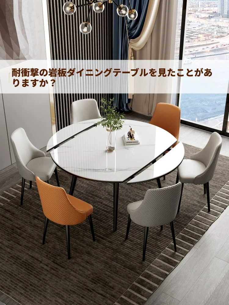 新疆送料無料!2024年新作の無垢材ロックボードダイニングテーブルセット。モダンでシンプルなデザイン、軽やかなラグジュアリー感を演出。小型住宅にぴったりな伸縮可能なダイニングテーブルで、家族や友人との楽しい食事をお楽しみください!