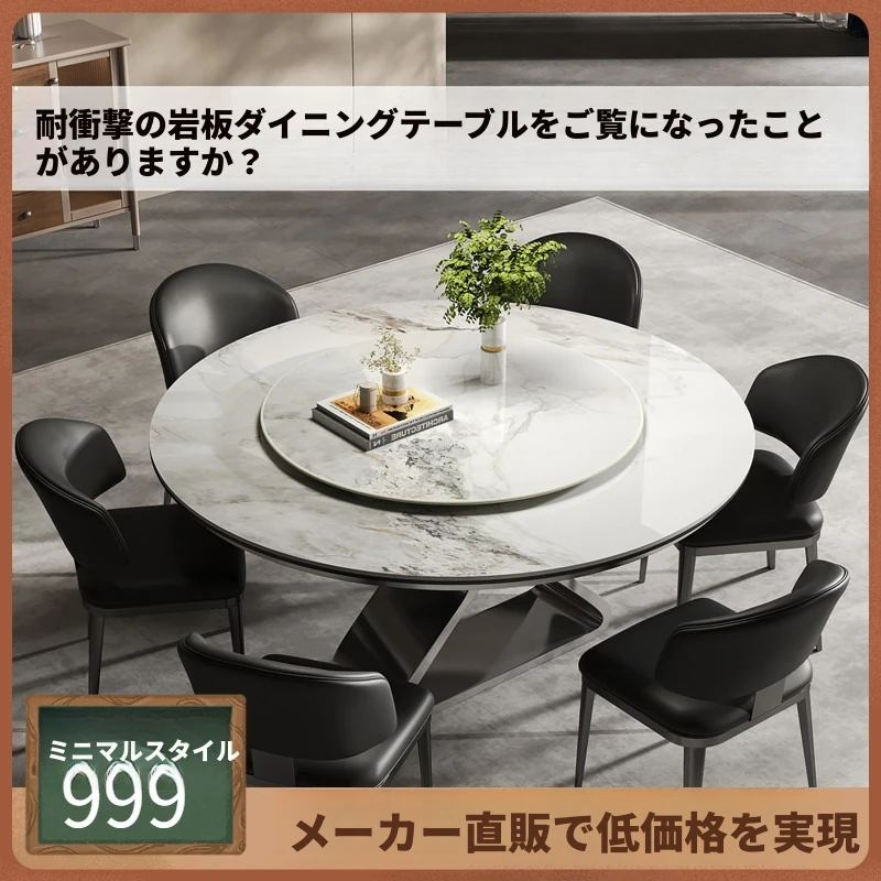 ブランド金属複合ステンレス鋼製ラウンドダイニングテーブルセット - モダンでシンプルなイタリアンデザイン、回転トレイ付きの円形コンビネーションで、家庭にぴったりのスタイリッシュな選択!