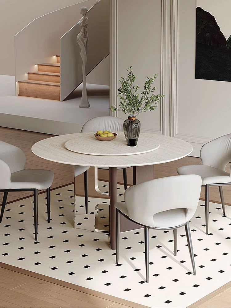 Italian Luxury Round Dining Table and Chair Set with Rotating Plate - Stainless Steel, Perfect for Small Living Spaces, Elegant Design for Your Home