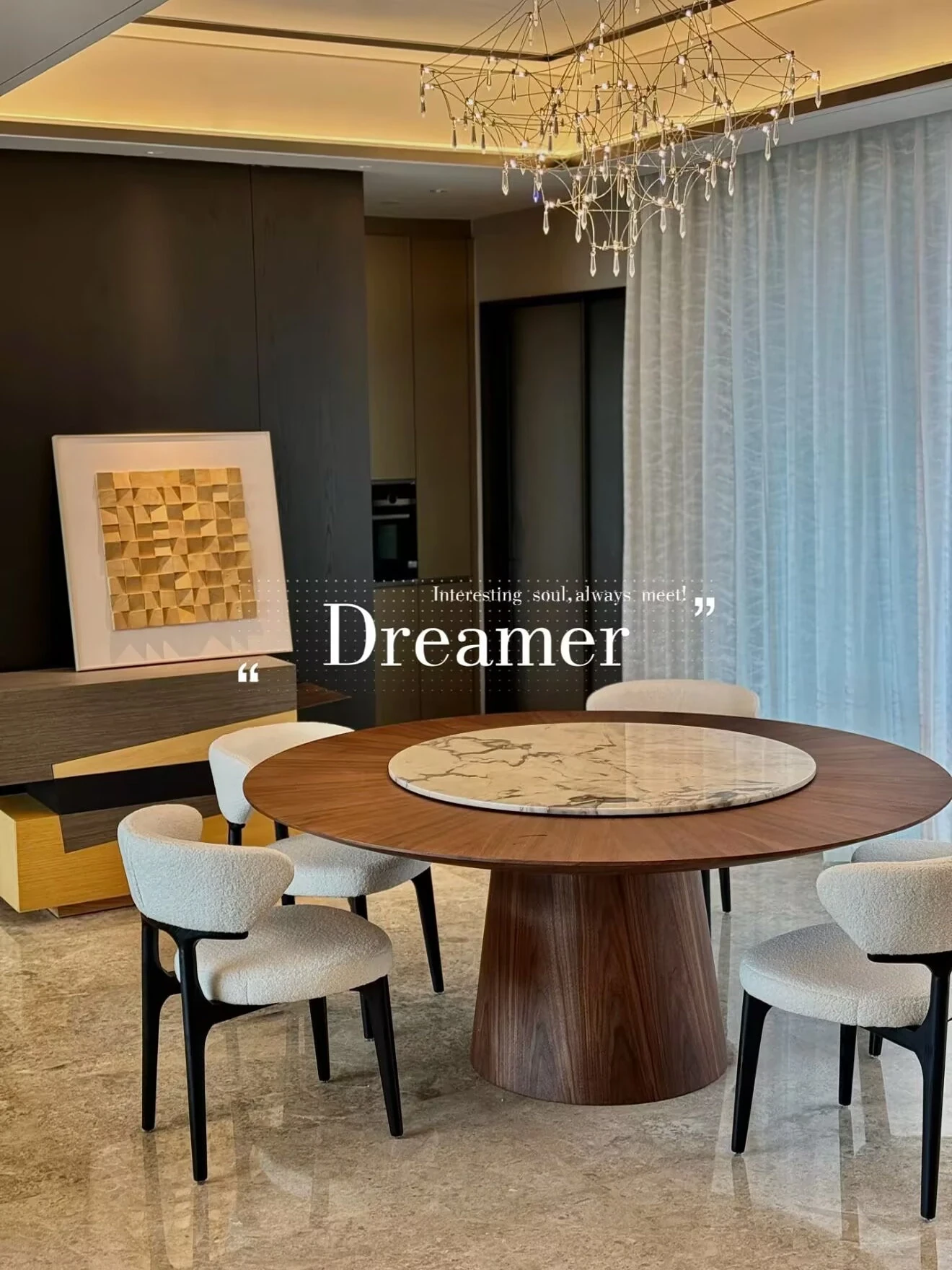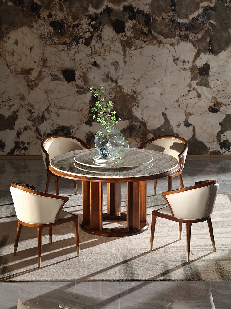 Elegant Vintage Solid Wood Marble Turntable Dining Table - Italian Minimalist Round Design by Top Designers, Perfect for Modern Homes