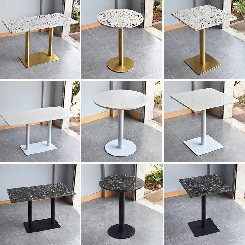 Trendy Minimalist Terrazzo Dining Table - Perfect for Milk Tea Shops, Dessert Cafés, Coffee Houses, and Western Restaurants - Ideal for Commercial Use and Business Meetings.