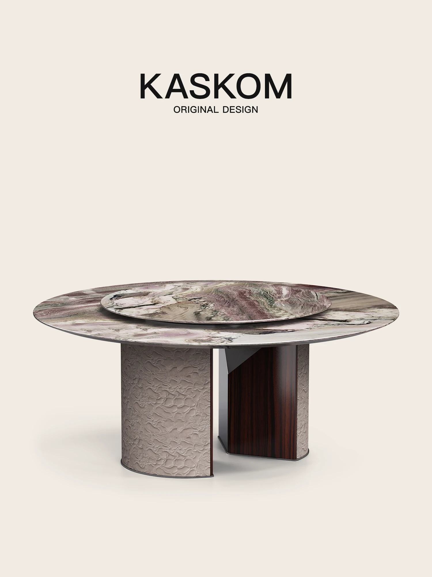 KASKOM Italian Luxury Purple Marble Round Dining Table with Chairs - Elegant High-End Furniture, New Arrival L2