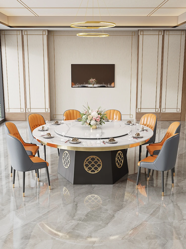 Elegant Round Dining Table for Home - Luxury Stone Table with Electric Rotating Turntable and Induction Cooktop, Ideal for Hot Pot and Restaurant Use, Perfect for Family Gatherings and Special Occasions