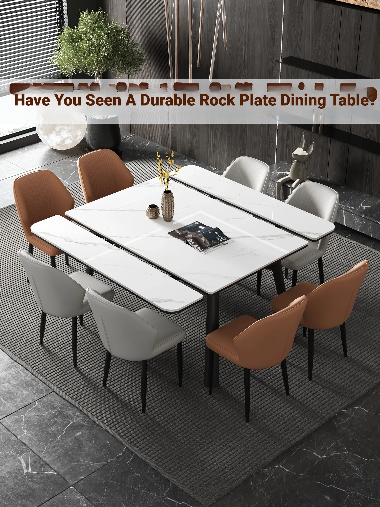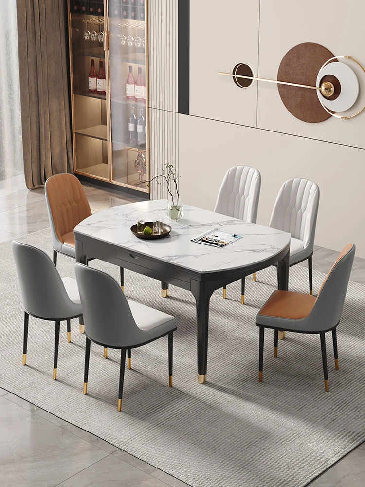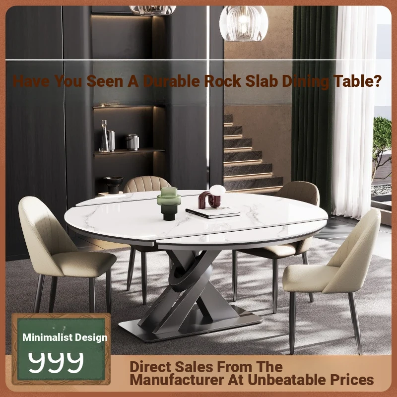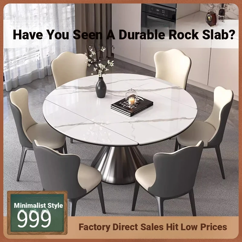 Free Shipping to Xinjiang: Modern Minimalist Luxury Rock Plate Dining Table and Chair Set - Space-Saving Expandable Folding Design for Small Living Rooms and Homes