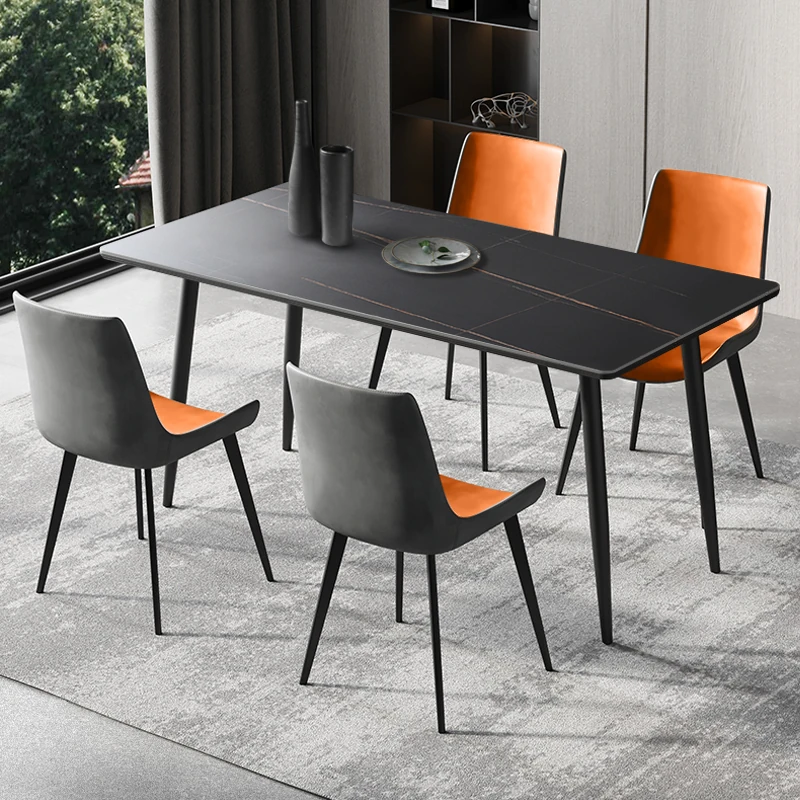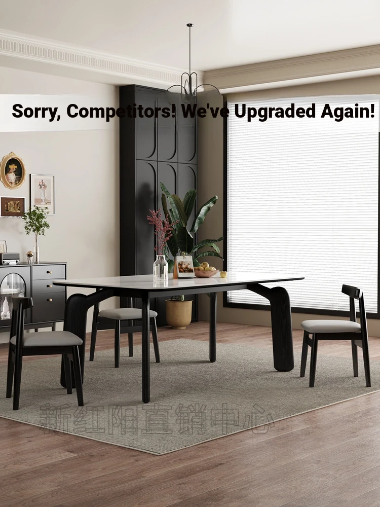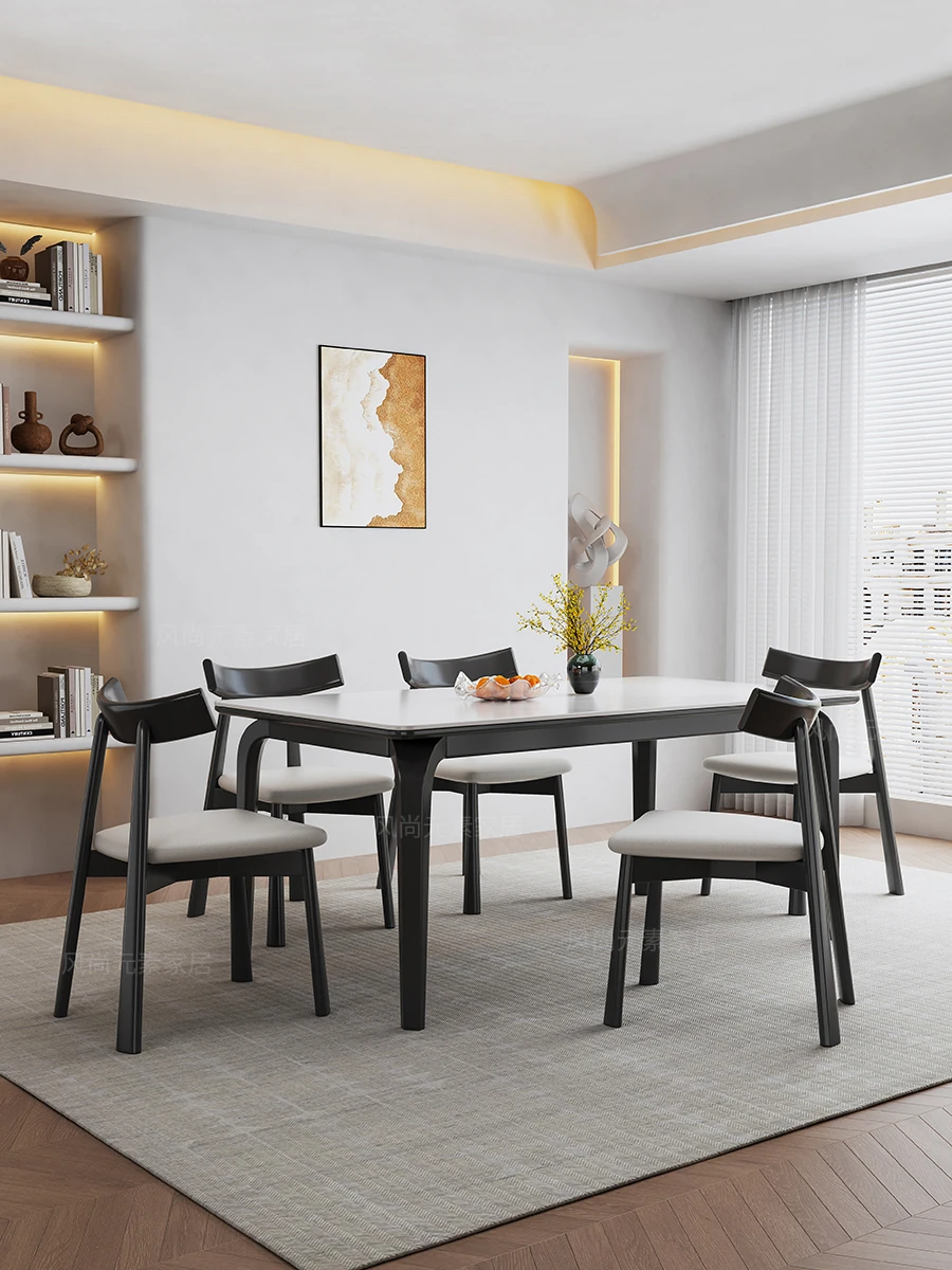 Modern Minimalist Rock Plate Dining Table and Chair Set - Italian Minimalist Luxury Nordic Style Solid Wood Rectangular Black Dining Table for Home Use