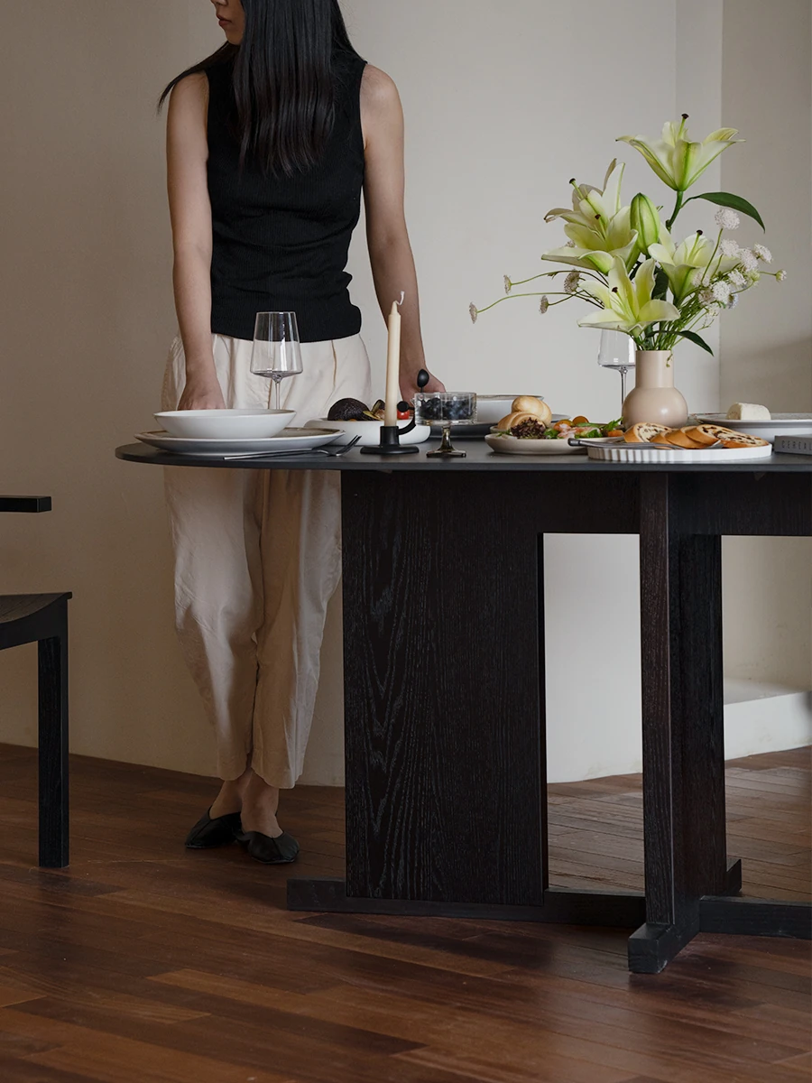 Modern Minimalist Round Dining Table Set with Black Walnut Wood - Wabi-Sabi Inspired Design for Vintage Charm in North America