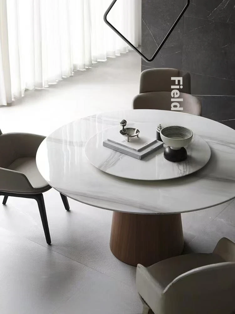 FOMAX Italian Modern Pure Natural Marble Round Dining Table with Rotating Tray - High-End Minimalist Luxury Design