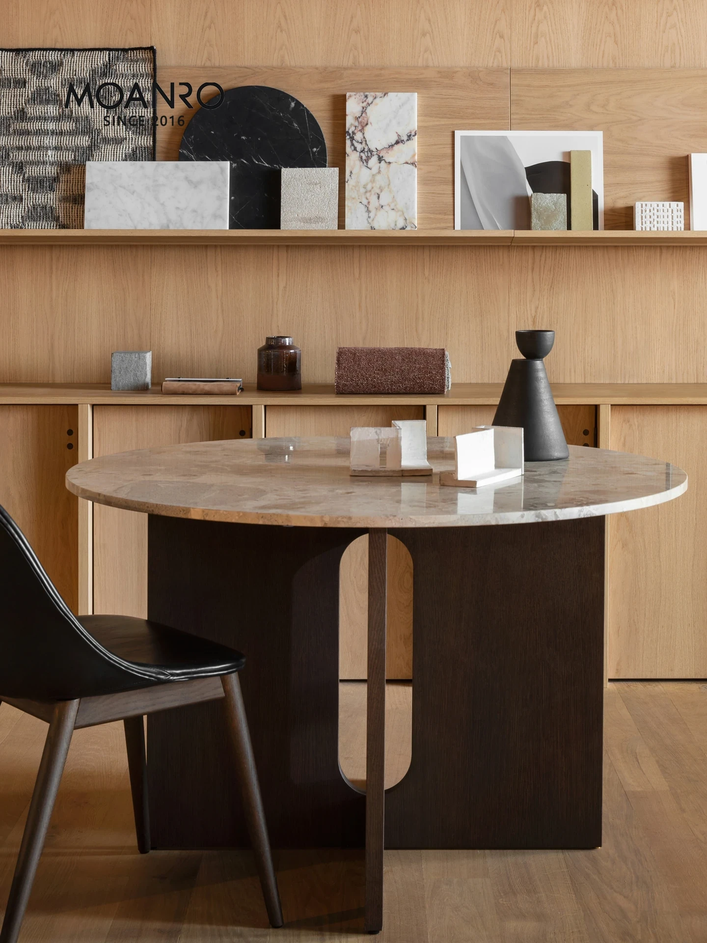 MoLu Rock Round Dining Table - Unique Marble and Terrazzo Design with Cherry Wood Accents for Modern Homes - Perfect Blend of Style and Functionality