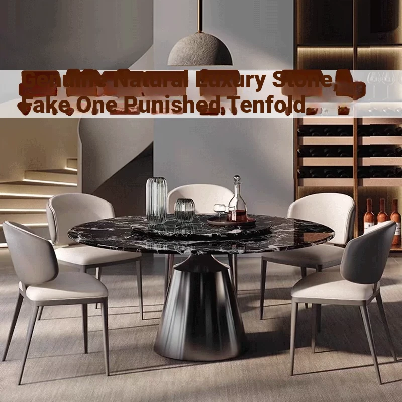 Luxury Natural Stone Round Dining Table and Chair Set - Elegant Italian Design, Premium Quality for Home Dining, Perfect for Sophisticated Gatherings, Experience Unmatched Durability with Our Authentic Products.
