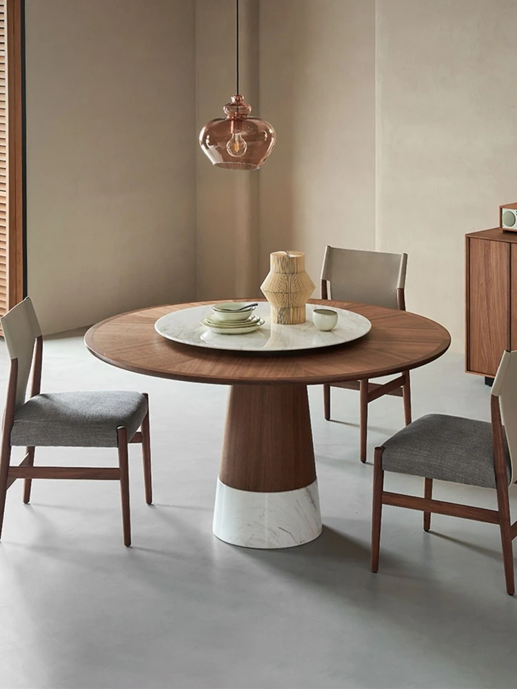 Nordic Minimalist Solid Wood Round Table - Modern Retro Italian Style with Lazy Susan for Home Use, Perfect for Chic Dining Experiences