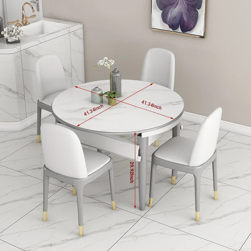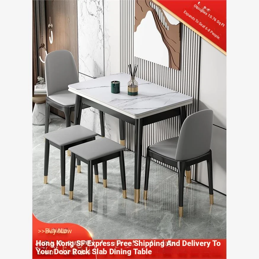 "Foldable Rock Plate Dining Table Set for Small Spaces - Modern Luxury Expandable Solid Wood Dining Table and Chairs for Home Use"