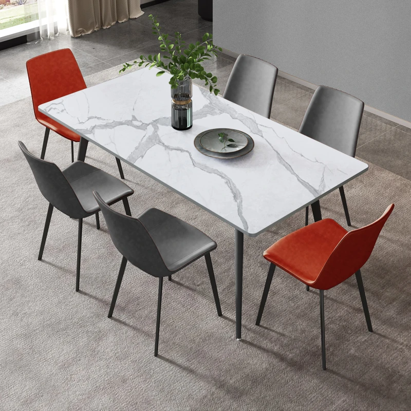 Italian Luxury Glossy Stone Dining Table Set – Modern Minimalist Rectangular Table with Chairs for Small Spaces, Perfect for Home Dining