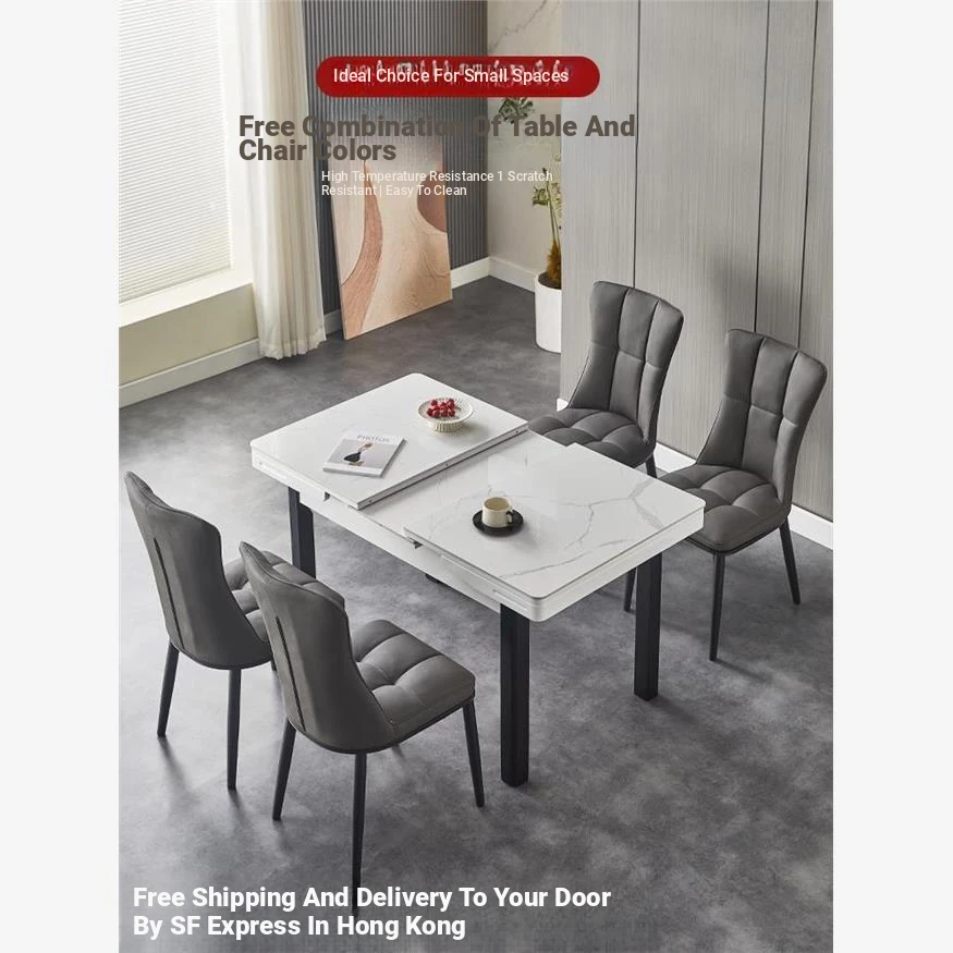 Folding Brand Composite Metal Dining Table and Chair Set – Expandable Rectangular Dining Table for Small Homes, Space-Saving Design with Pull-Out Feature