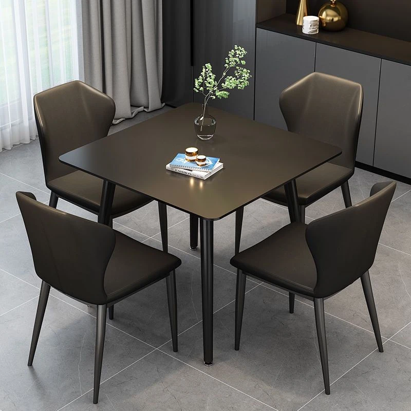 Modern Minimalist Light Luxury Glossy Stone Dining Table and Chair Set for Small Spaces – Square Dining Table for Western and Chinese Cuisine, Perfect for Restaurants and Meetings