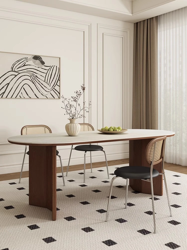 French-style Rock Plate Dining Table Island - Modern Minimalist, Luxury Design for Small Spaces, Unique Shape, Perfect for Nordic Living Rooms and Dining Areas.