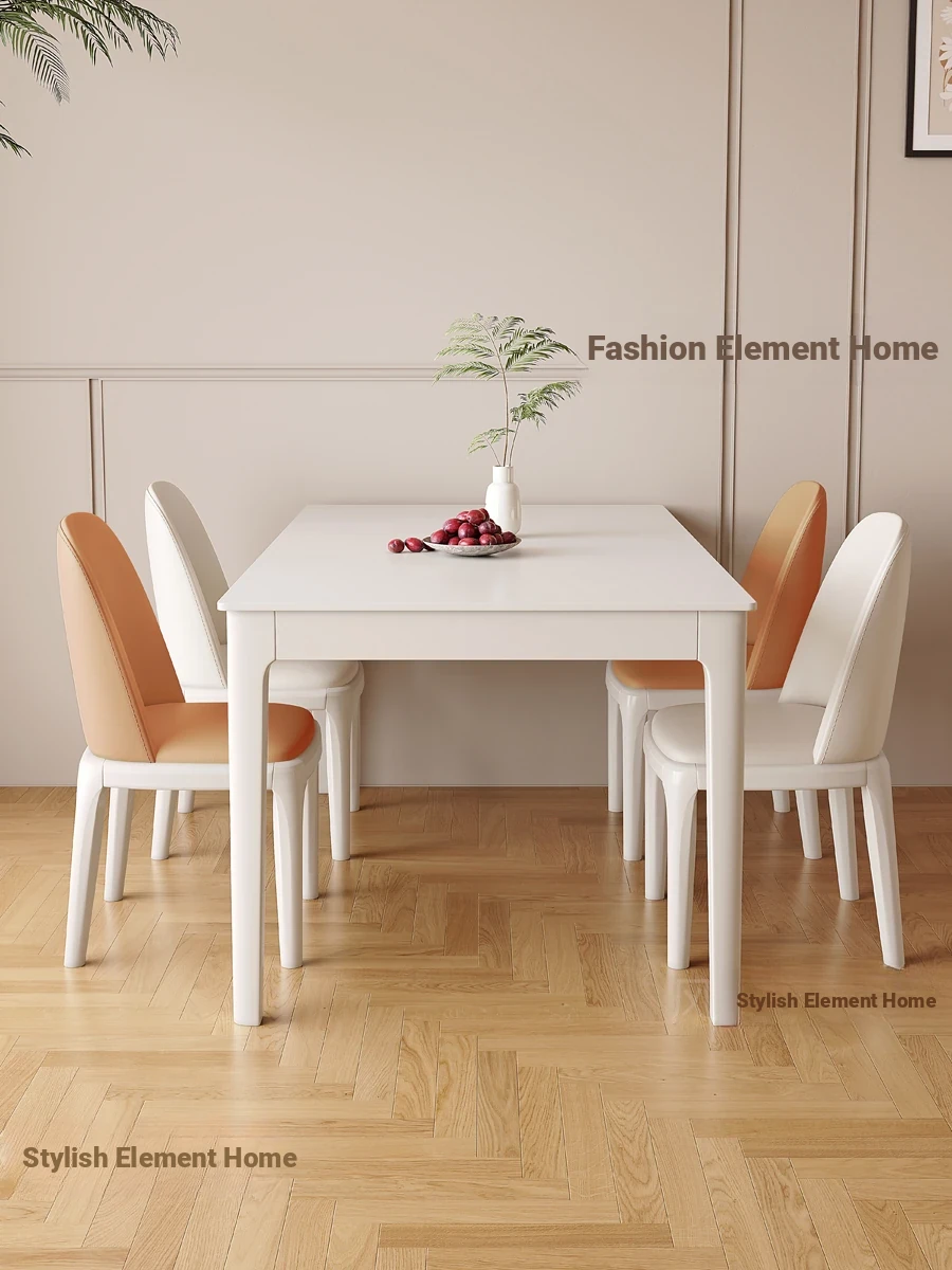 Nordic Modern Minimalist Cream White Rectangular Dining Table and Chair Set - Solid Wood for Small Spaces, Perfect for Home Dining