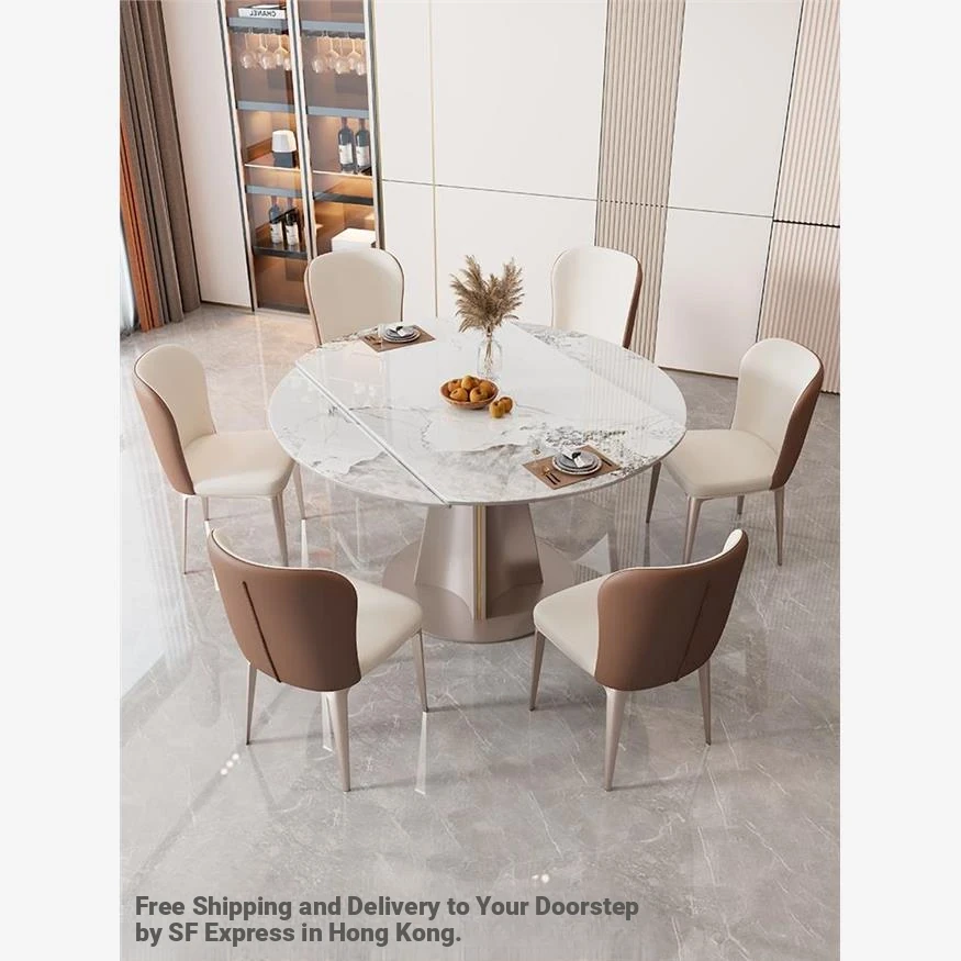 "Stylish Extendable Dining Table with Glossy Rock Surface - Modern Minimalist Design for Small Spaces, Versatile & Foldable, Perfect for Luxurious Living - Free Shipping in Hong Kong!"