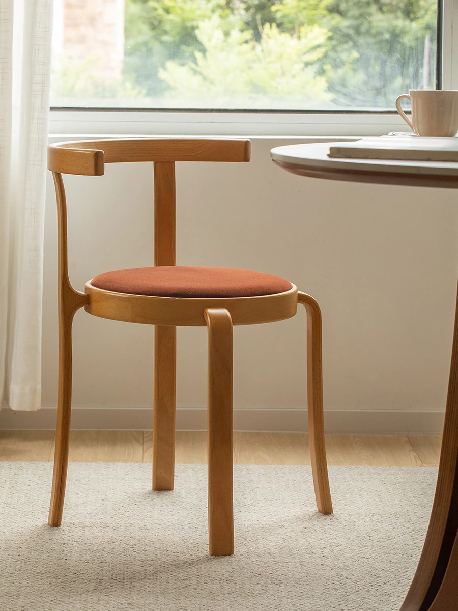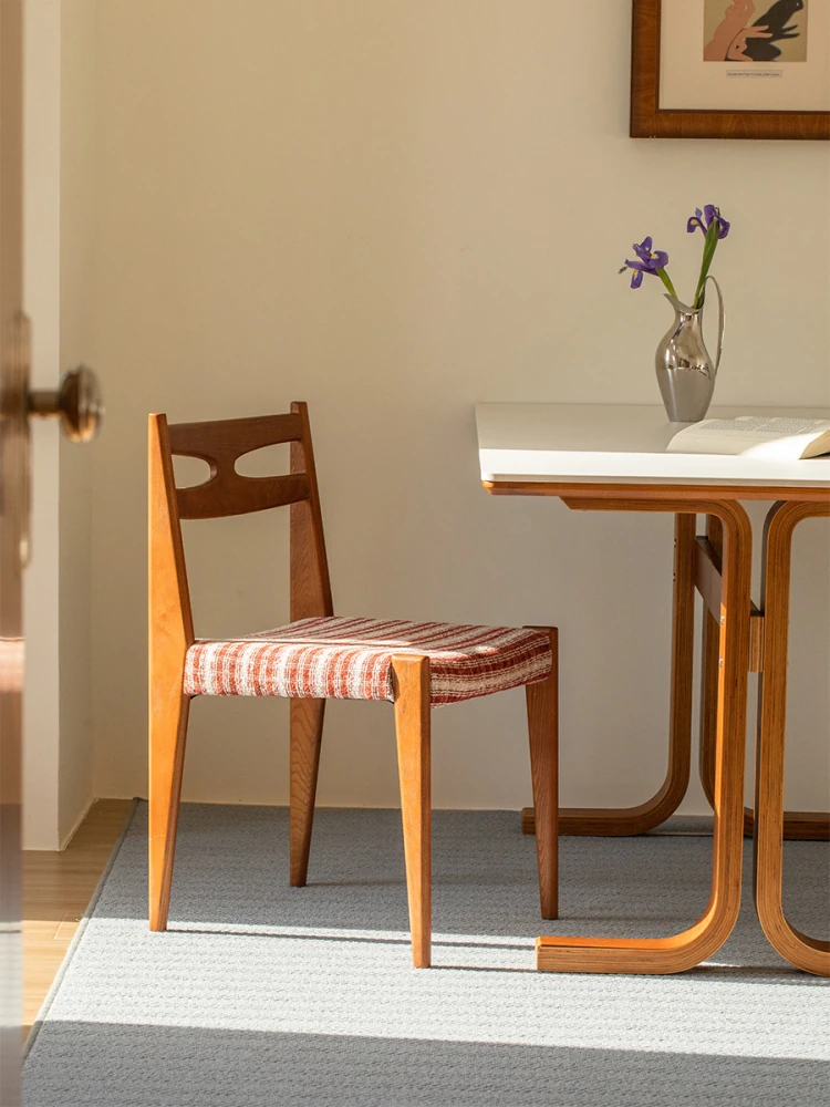 Laimo | Vintage Solid Wood Dining Chair 2025 New Arrival - Retro Designer Chair for Home Dining and Makeup Use