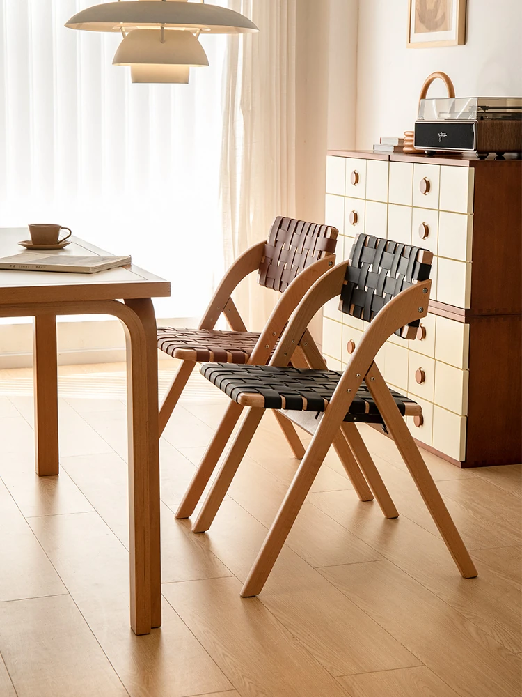 Laimo Vintage Solid Wood Dining Chair 2025 - Space-Saving Foldable Saddle Leather Chair for Home Use, Perfect for Small Apartments