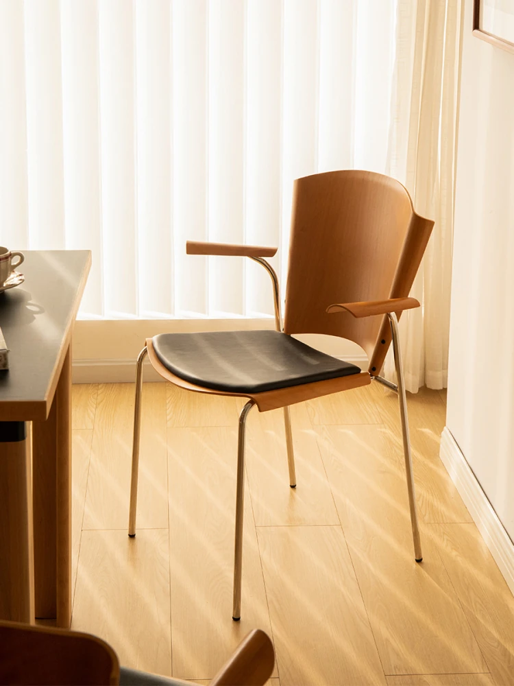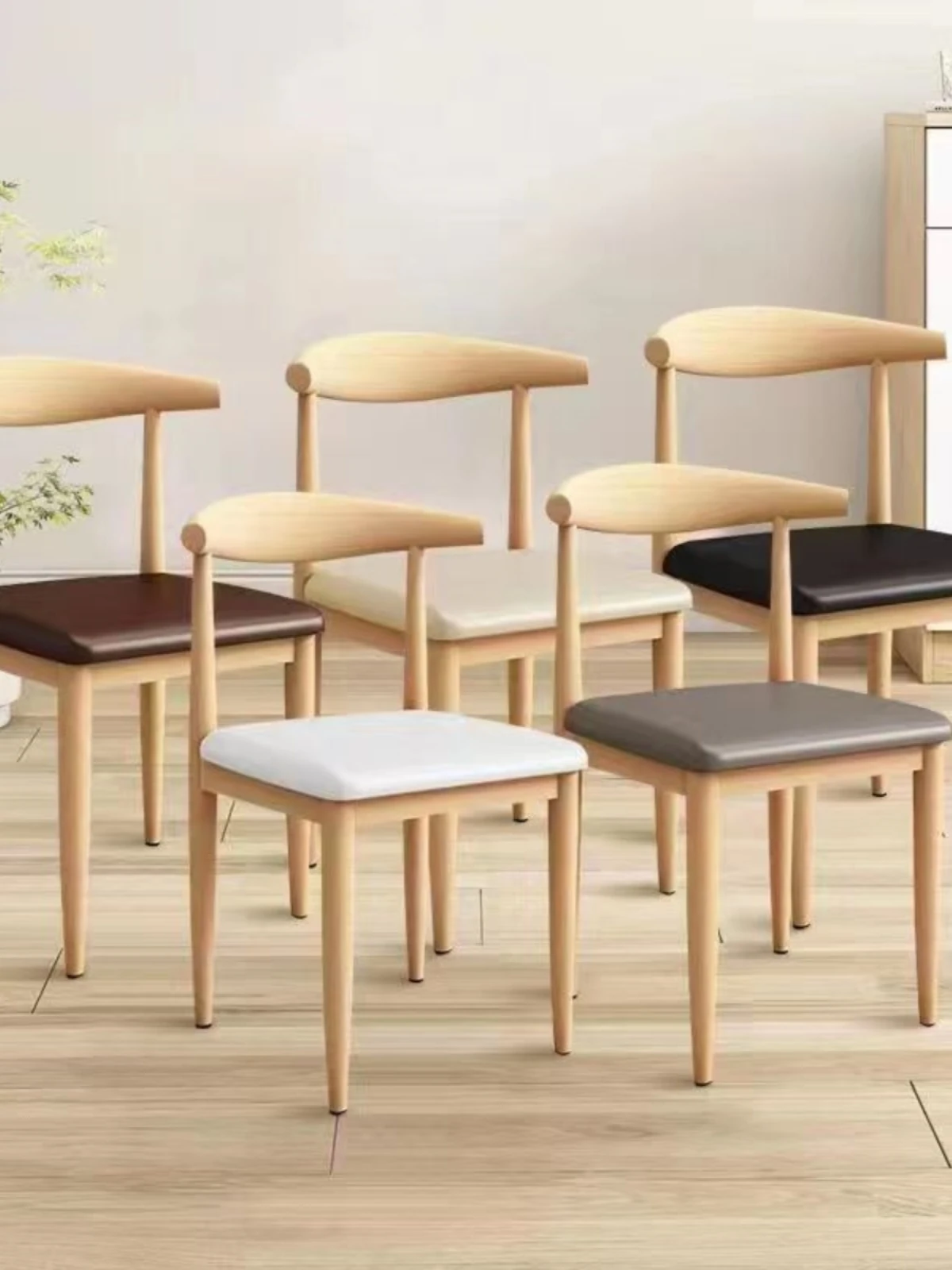 Nordic Style Modern Minimalist Dining Chair - Versatile Home & Office Seat with Backrest, Faux Wood Iron Horn Design for Dining Room and Study, Perfect for Casual Relaxation.