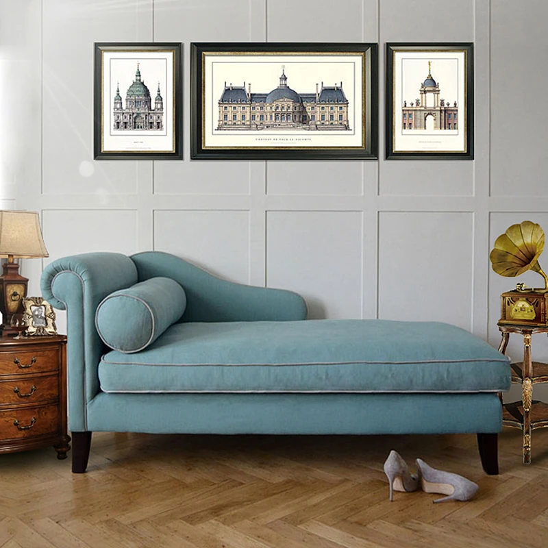 American Country Style Chaise Lounge - Nordic Fabric Sofa for Bedroom, Elegant Daybed with Beautiful Reclining Design, Perfect for Relaxation and Comfort.