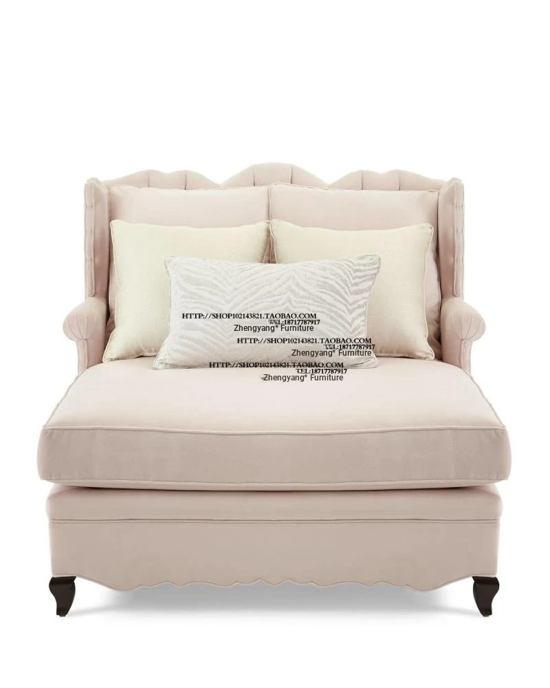 Belgian French Country Button-Tufted Fabric Chaise Lounge - Elegant Daybed for Showroom & Villa Furniture