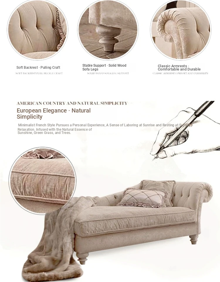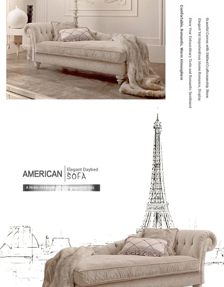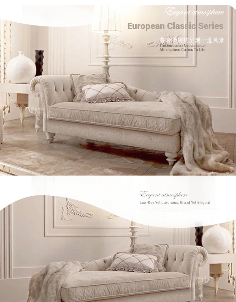 European Luxury Chaise Lounge - French Country Style Sofa Bed for Bedroom - Elegant and Comfortable Lounge Chair for Relaxation