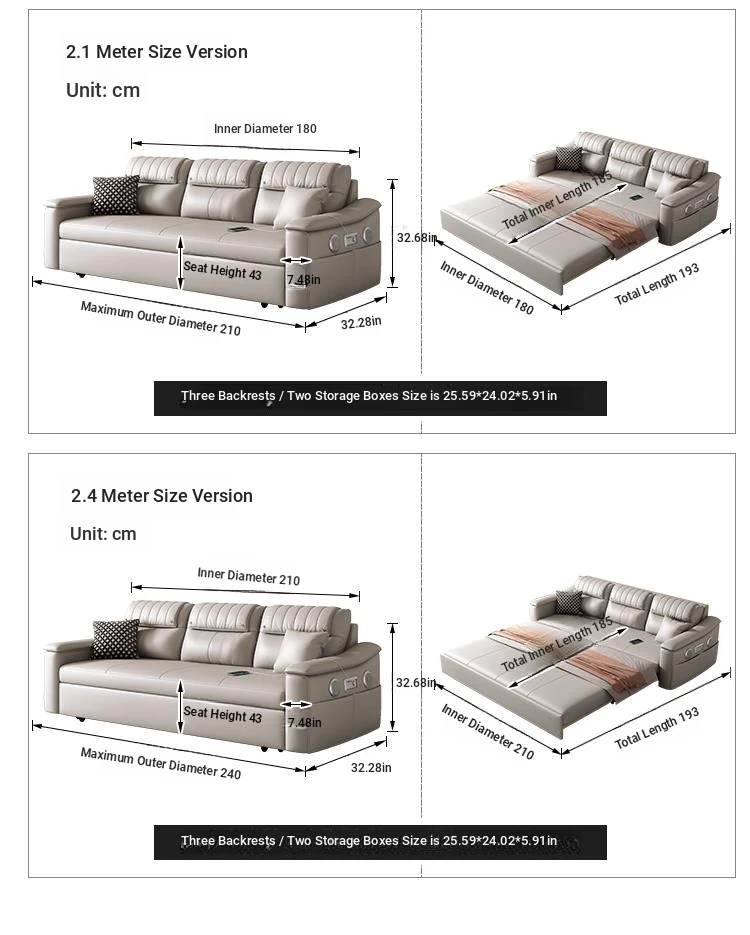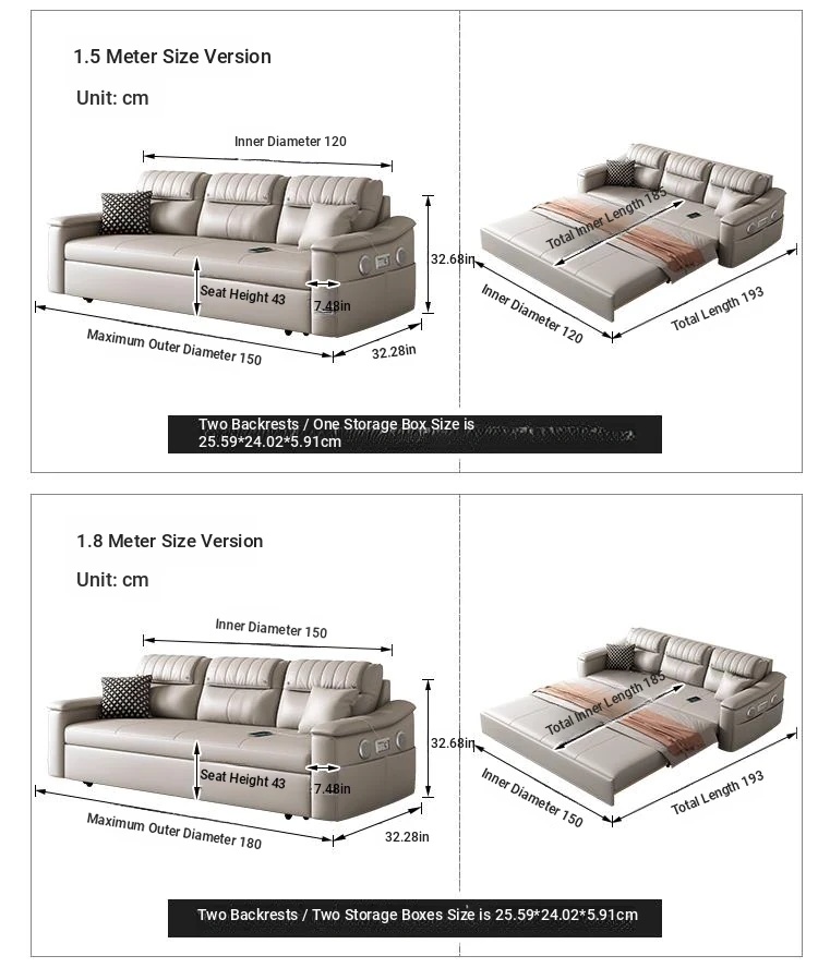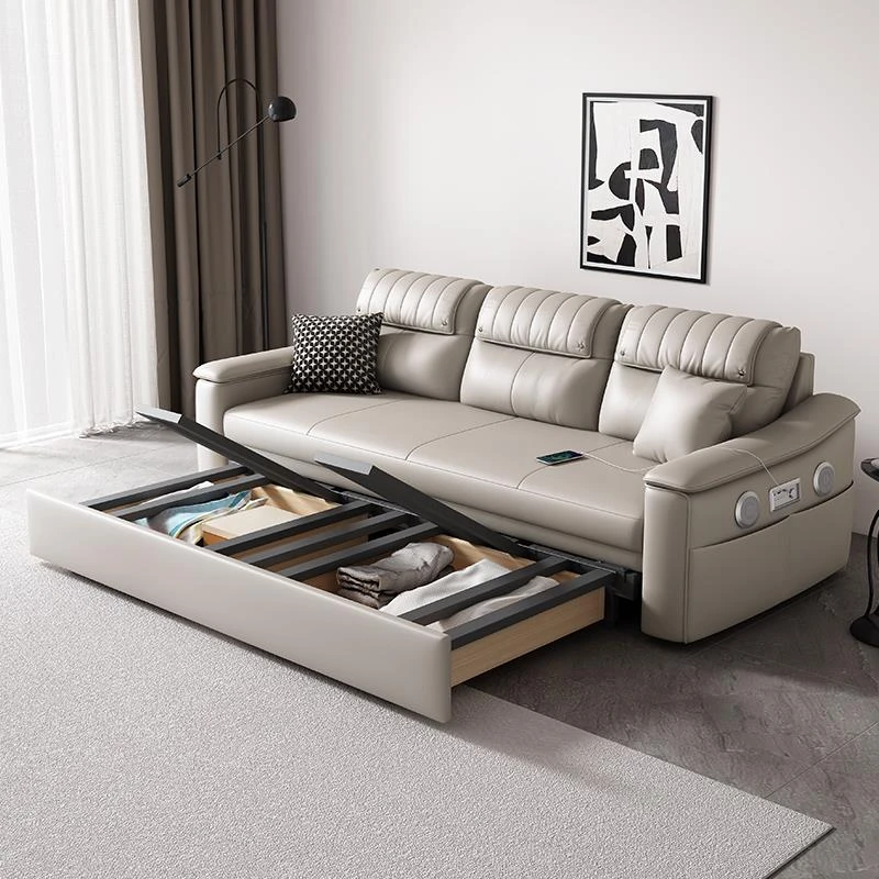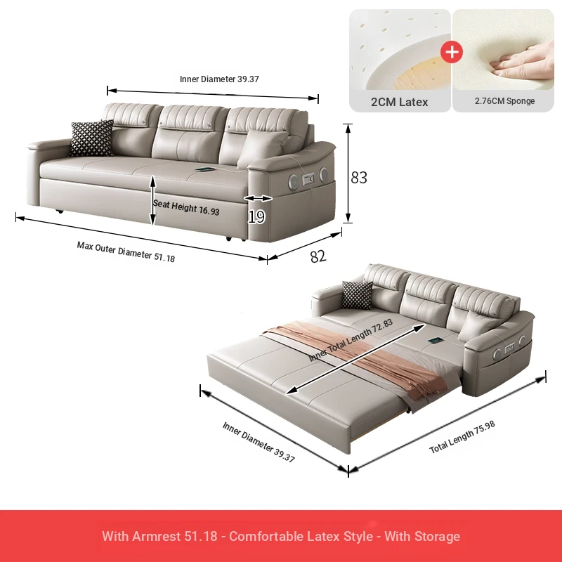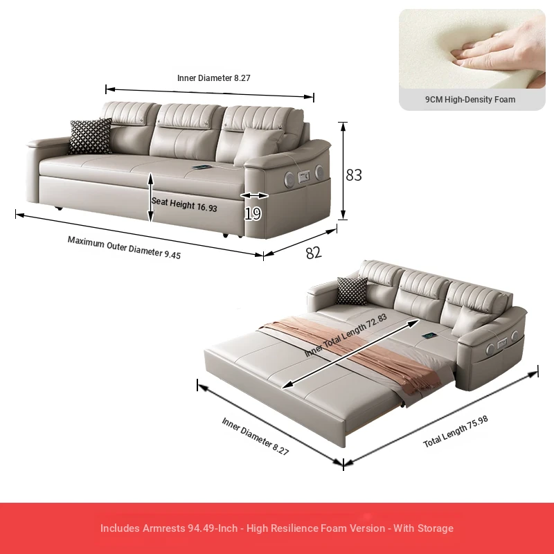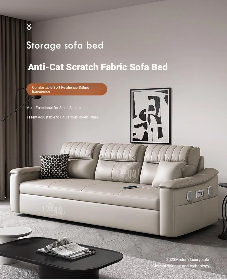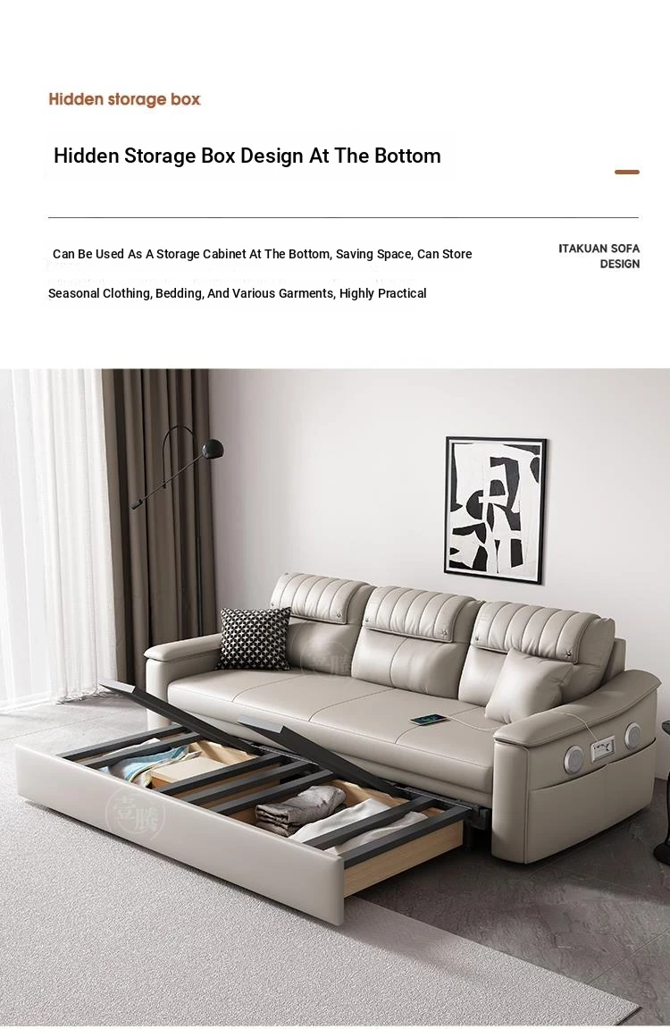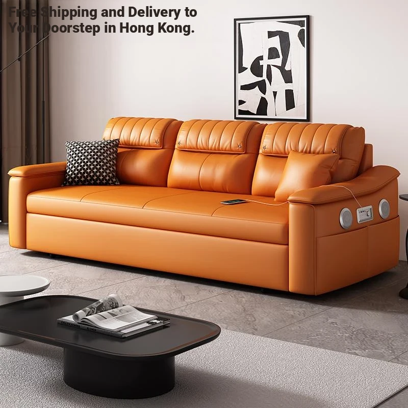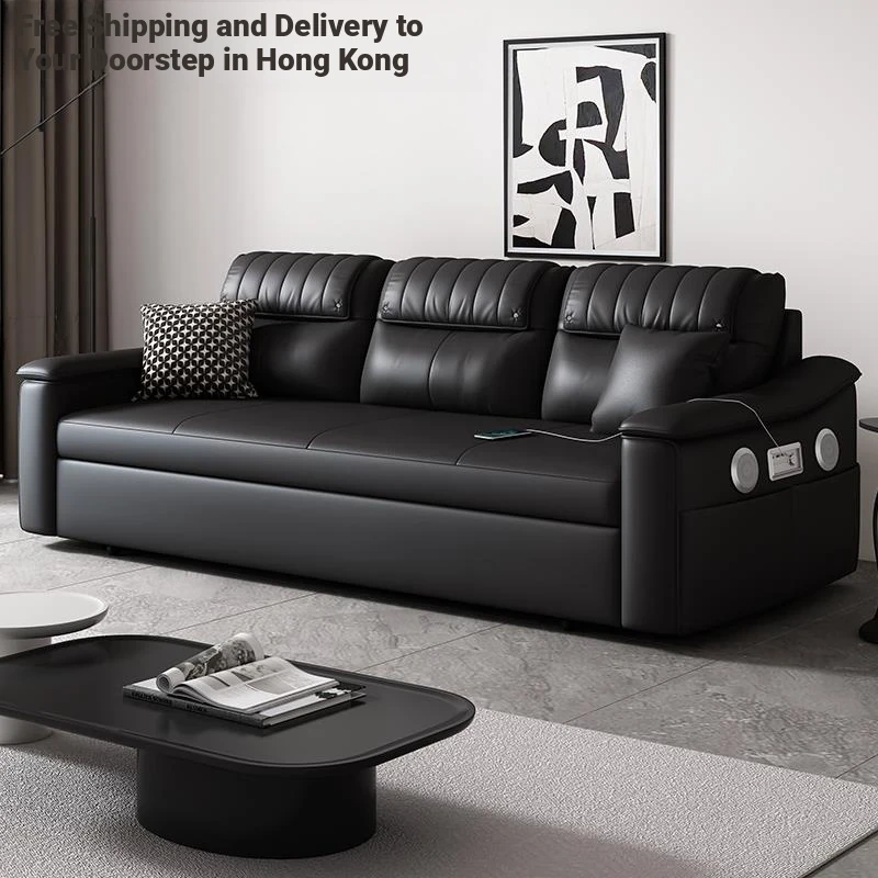 【Free Shipping to Hong Kong】Modern Minimalist Foldable Sofa Bed - Versatile Leather Design with Storage for Living Room Comfort and Style