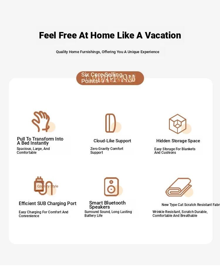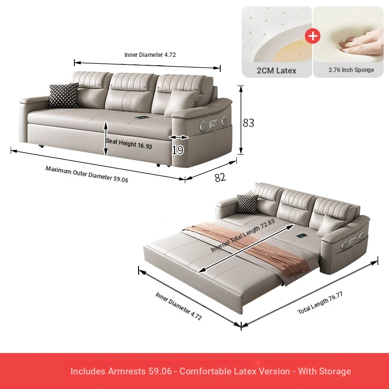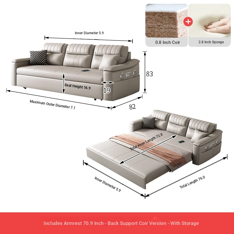 Including handrails 82.68 ins-high elastic sponge-with storage