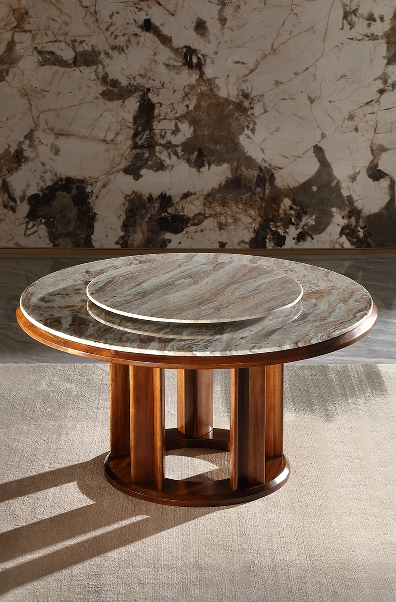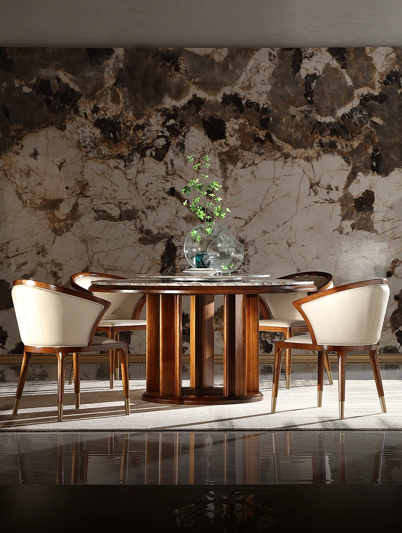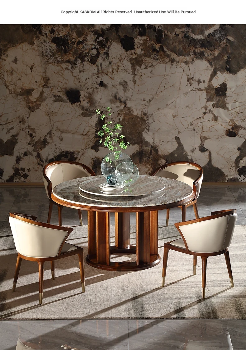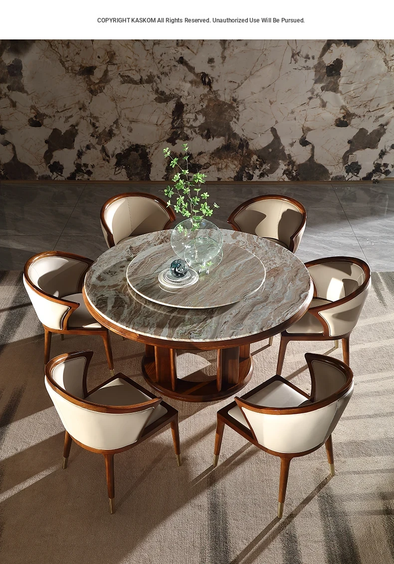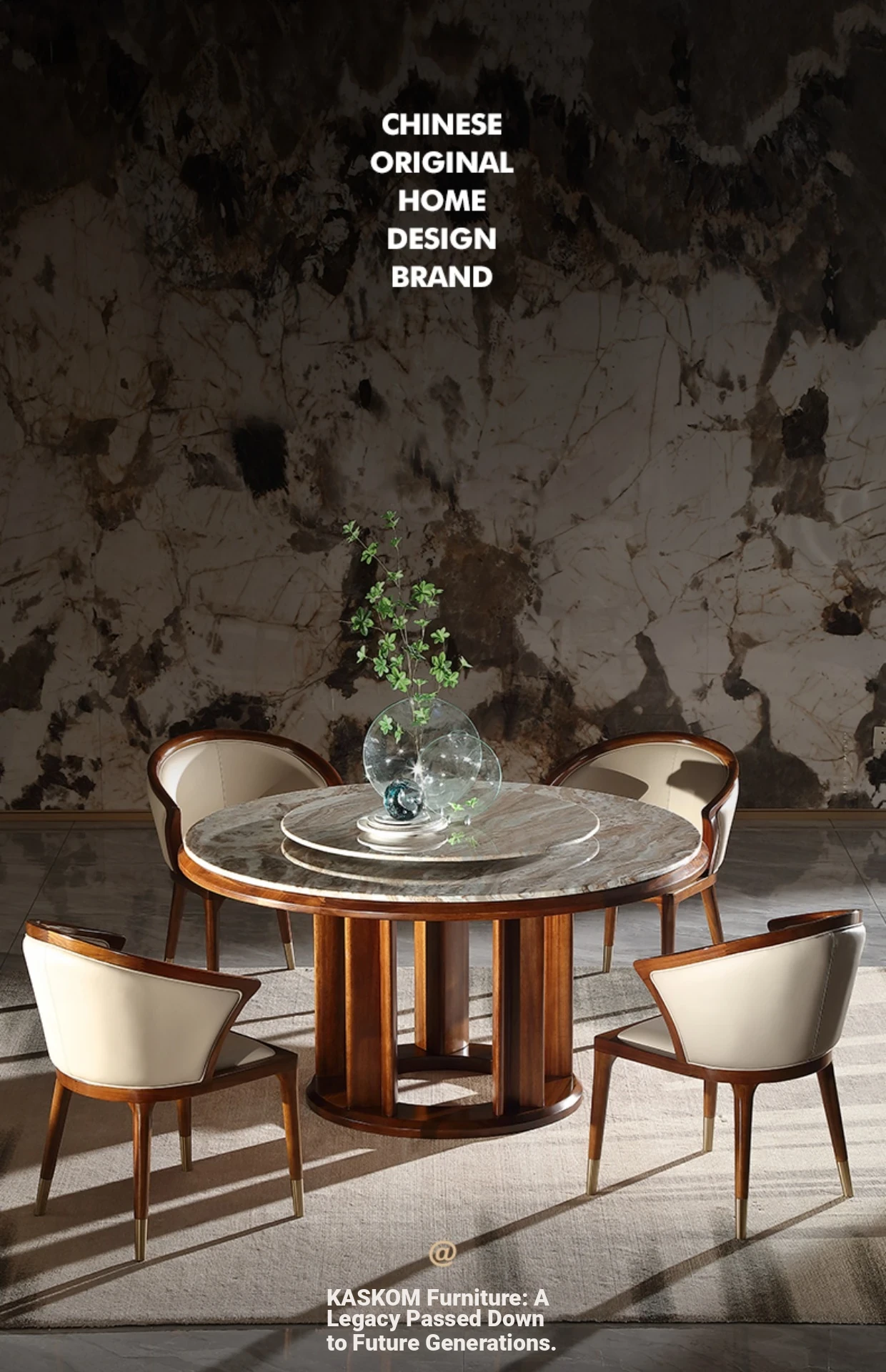 KASKOM Modern New Chinese Style Marble Round Dining Table and Chair Set with Luxurious Wenge Wood Furniture - C2 Collection for Elegant Dining Experience