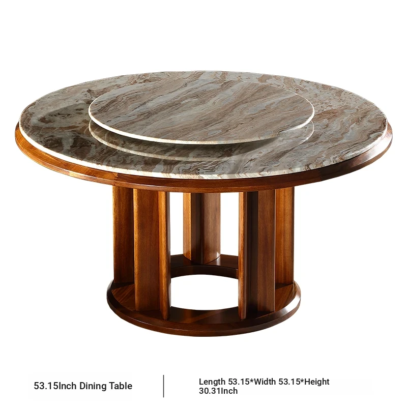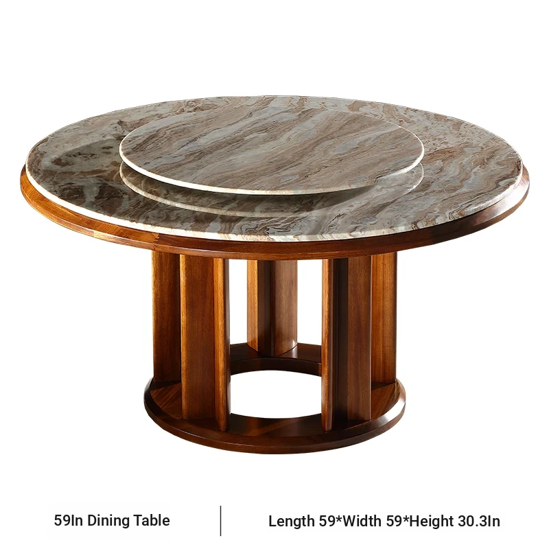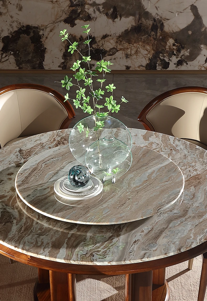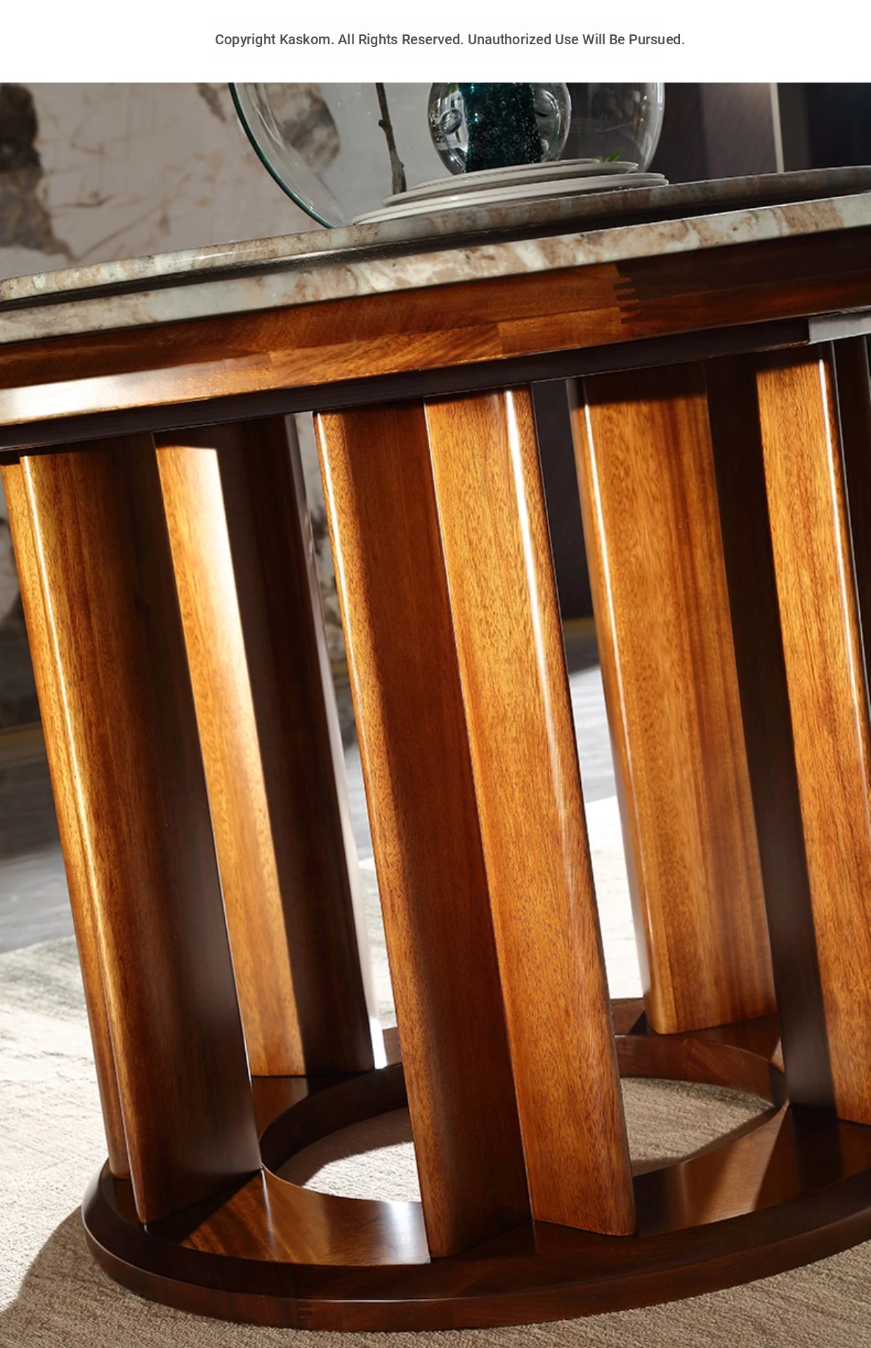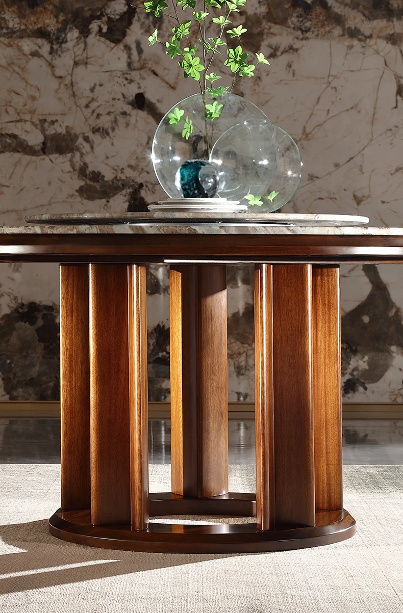 KASKOM Modern New Chinese Style Marble Round Dining Table and Chair Set with Luxurious Wenge Wood Furniture - C2 Collection for Elegant Dining Experience
