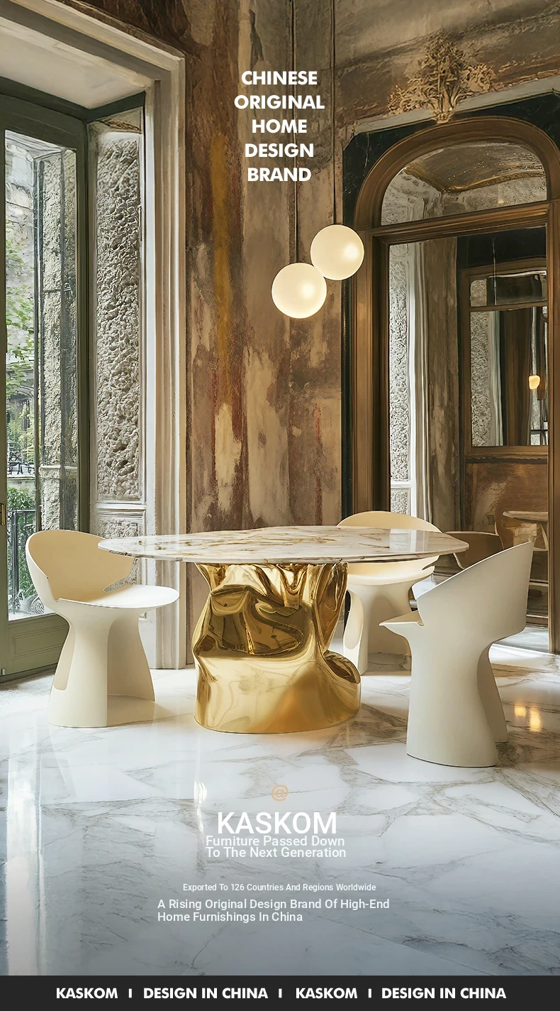 KASKOM Original Design Art Aesthetic Dining Table and Chairs - Luxury Villa Restaurant Furniture for High-End International Spaces A9