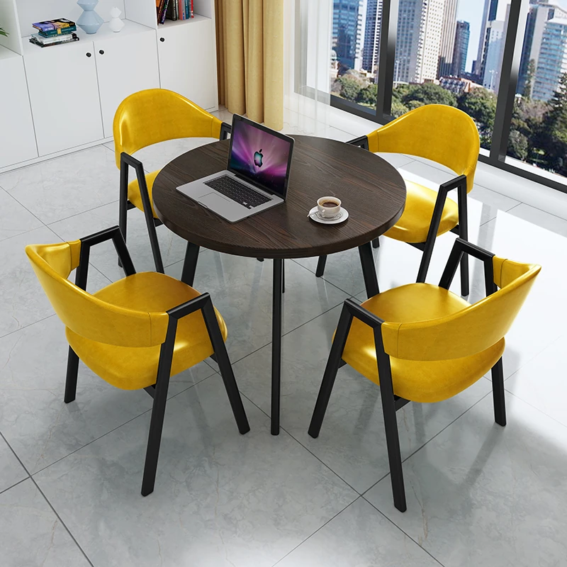 Modern Minimalist Reception Meeting Table and Chair Set - Perfect for Offices, Sales Centers, Lounge Areas, and Balcony Relaxation with Chic Small Round Dining Table and Chairs.