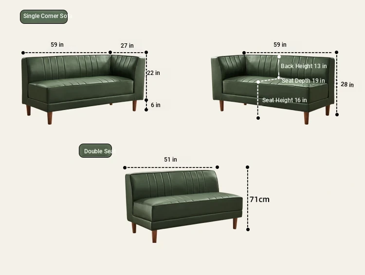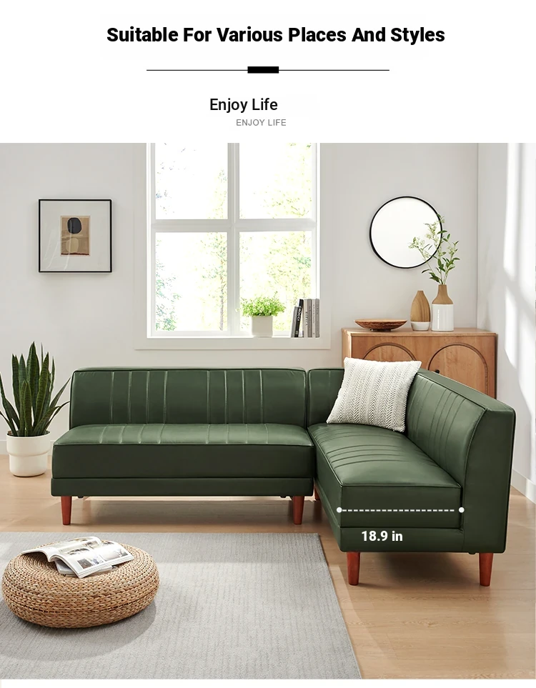 Nordic Green Corner Sofa Set - Japanese Modern Minimalist Armless Office Couch for Living Room, Versatile Left/Right Configuration