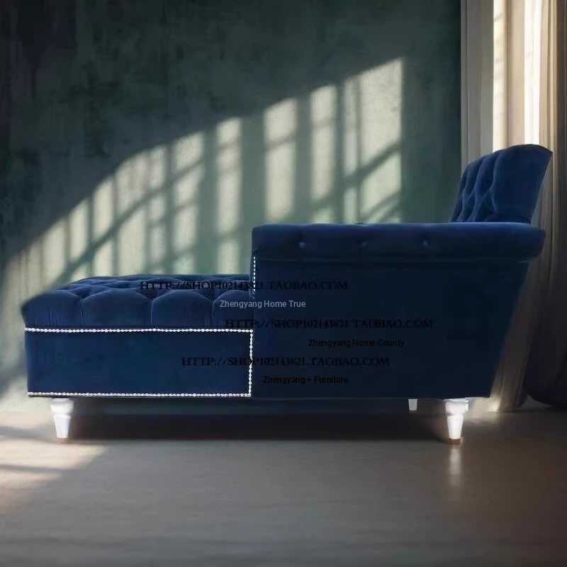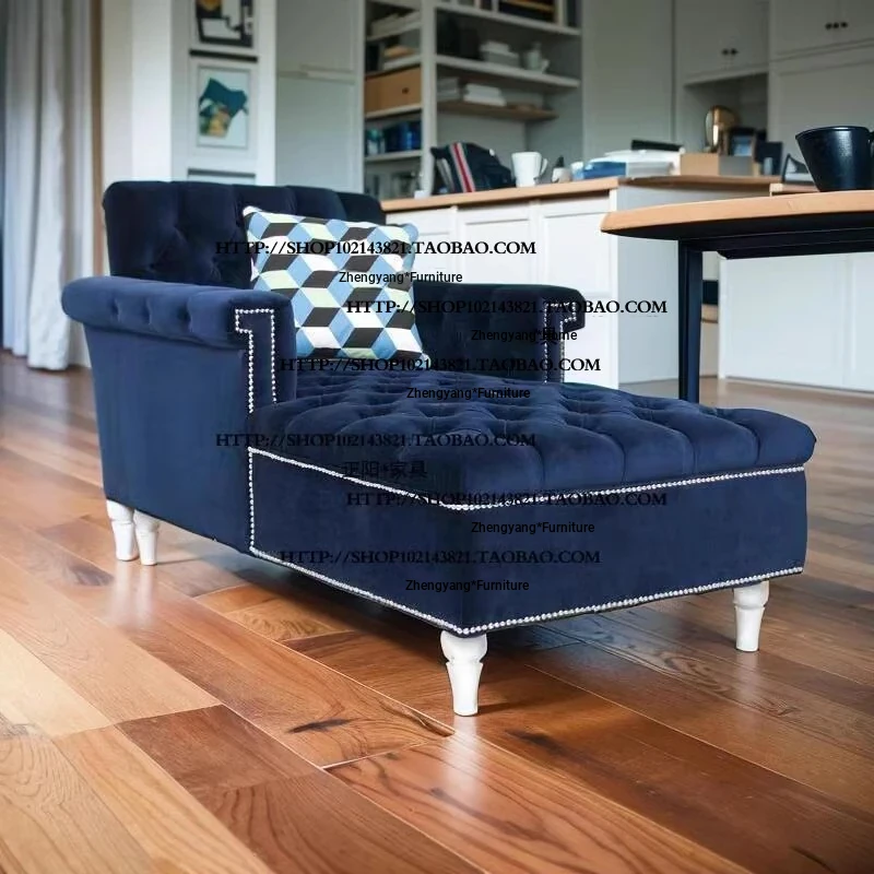 Nordic Rustic Solid Wood Studded Button Fabric Single Sofa Chair Chaise Lounge – Elegant and Cozy Furniture for Your Living Space