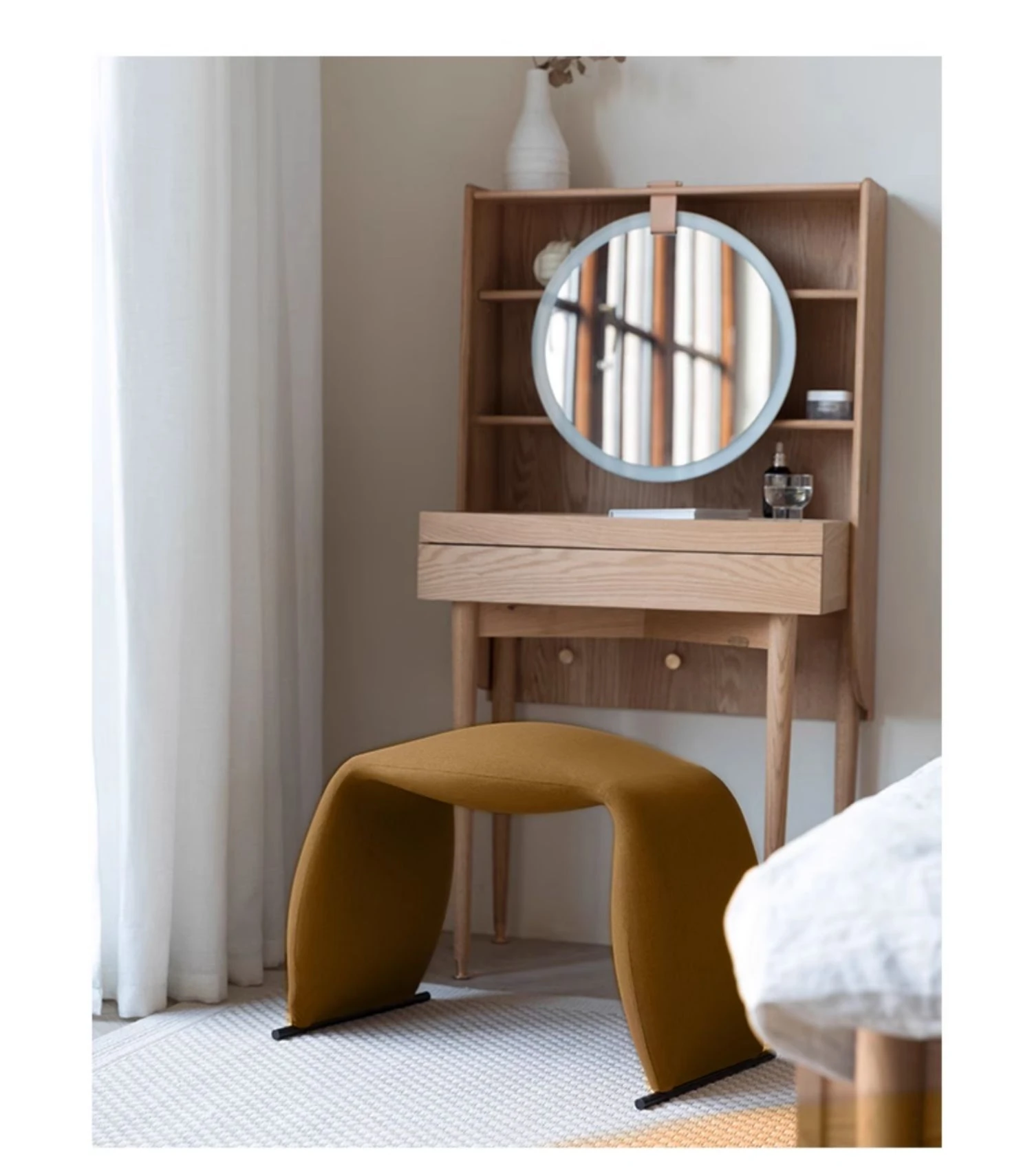 ZhiYin Encounter Single Stool - Chic Nordic Design, Modern Minimalist Soft-Padded Makeup Stool, Ideal for Dining and Japanese-Style Vanity Use