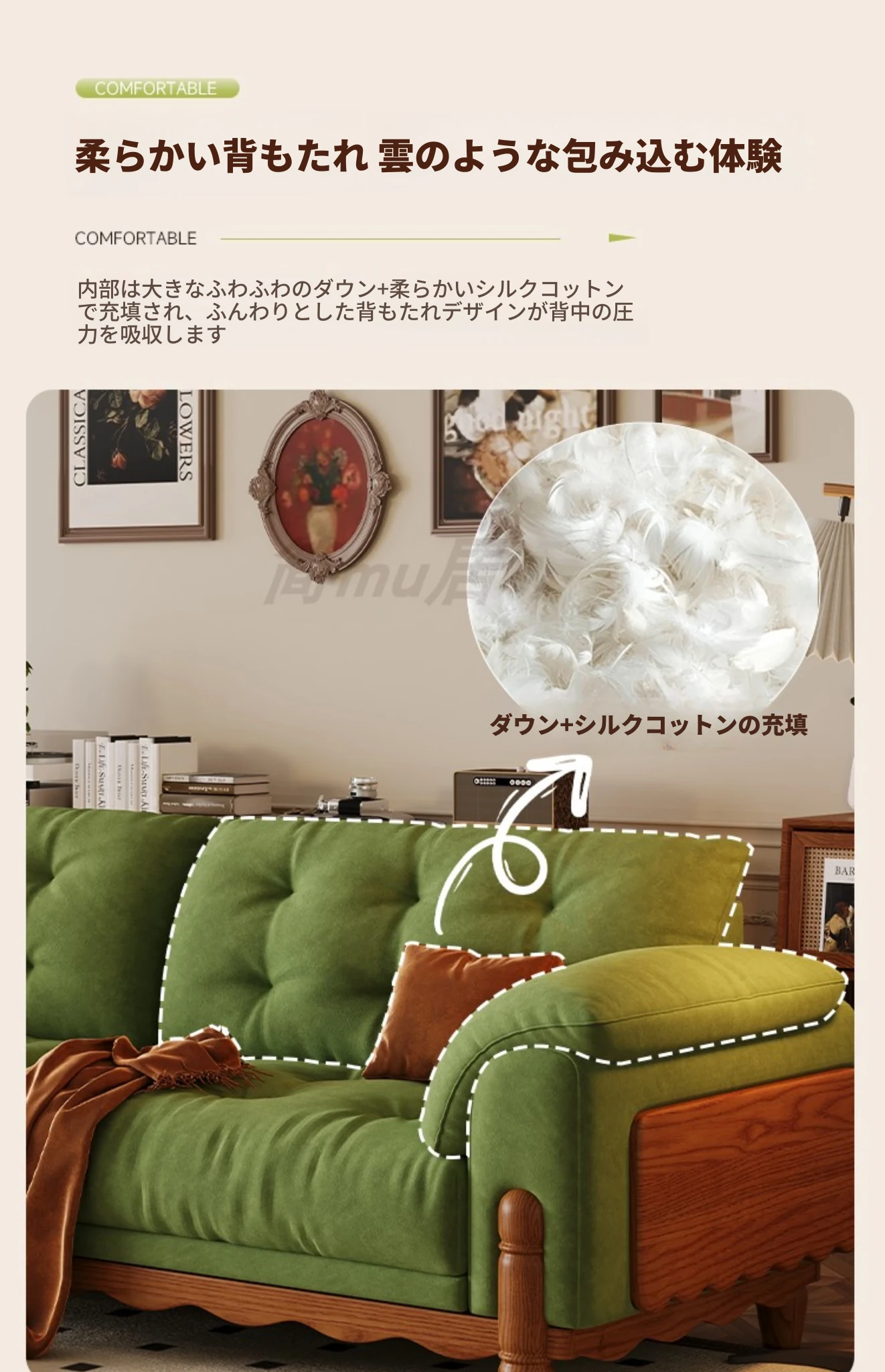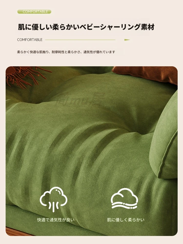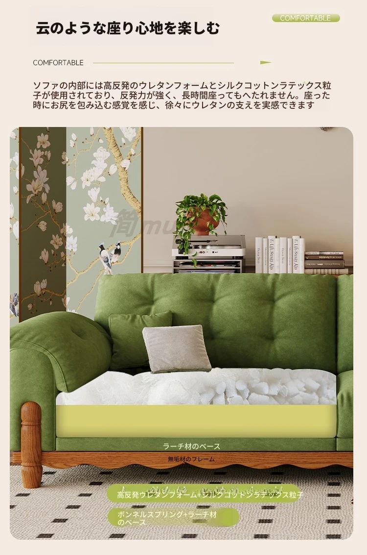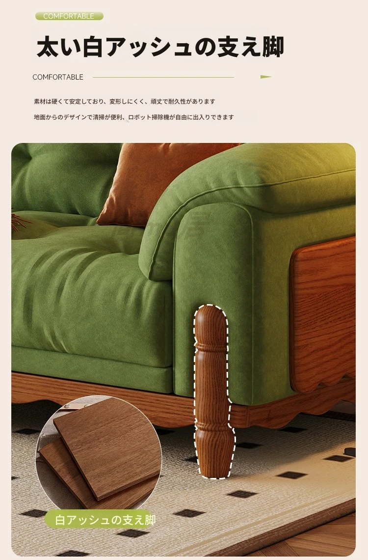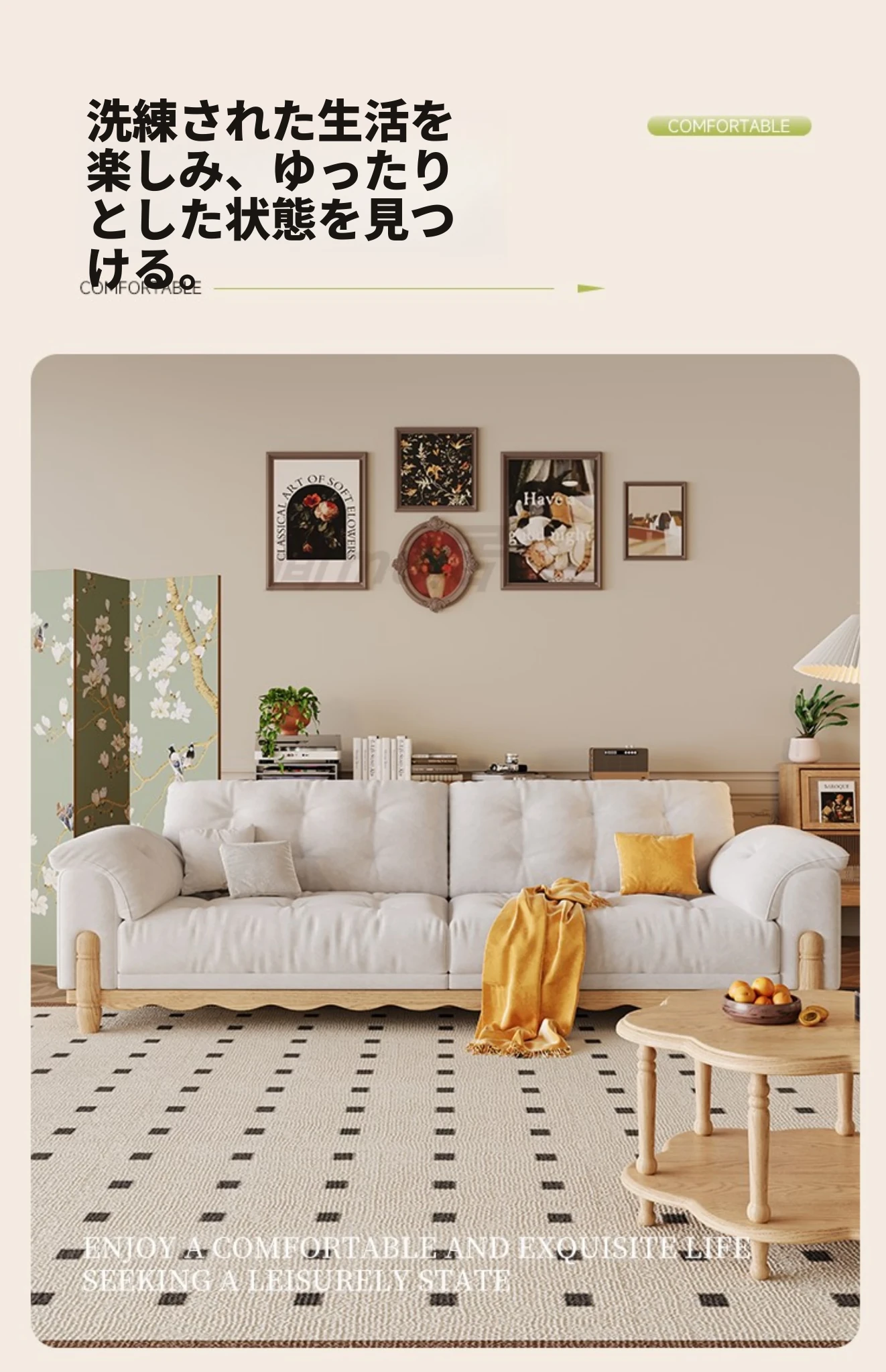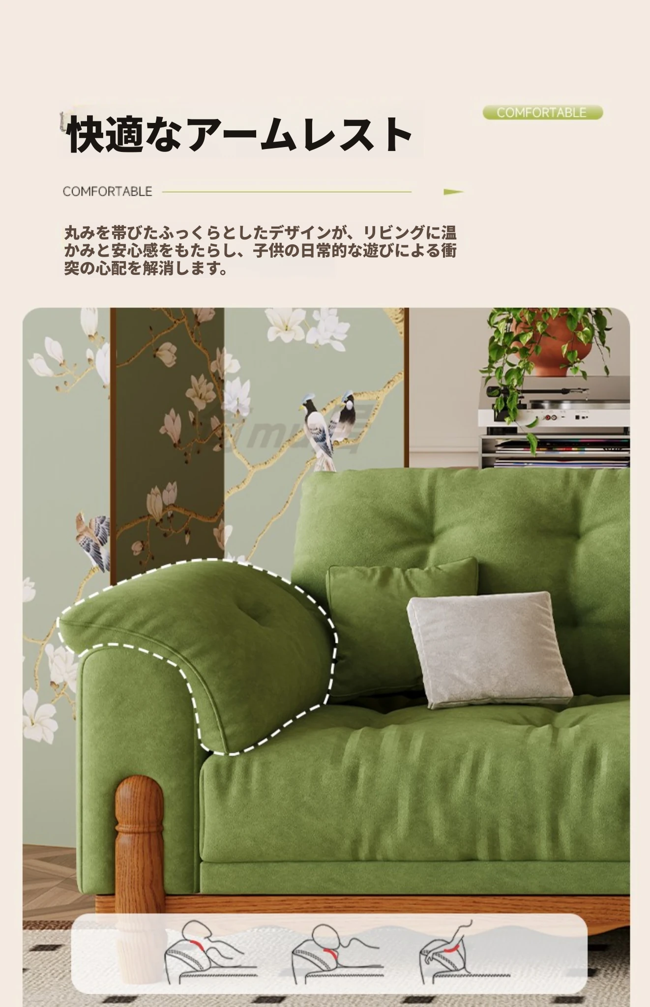 2025年新作!贅沢なクリーム風ベビーフランネルソファ - モダンなデザイン、ハイスタンドホワイトアッシュ無垢材、心地よいファブリックでリビングを華やかに演出!