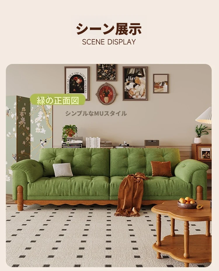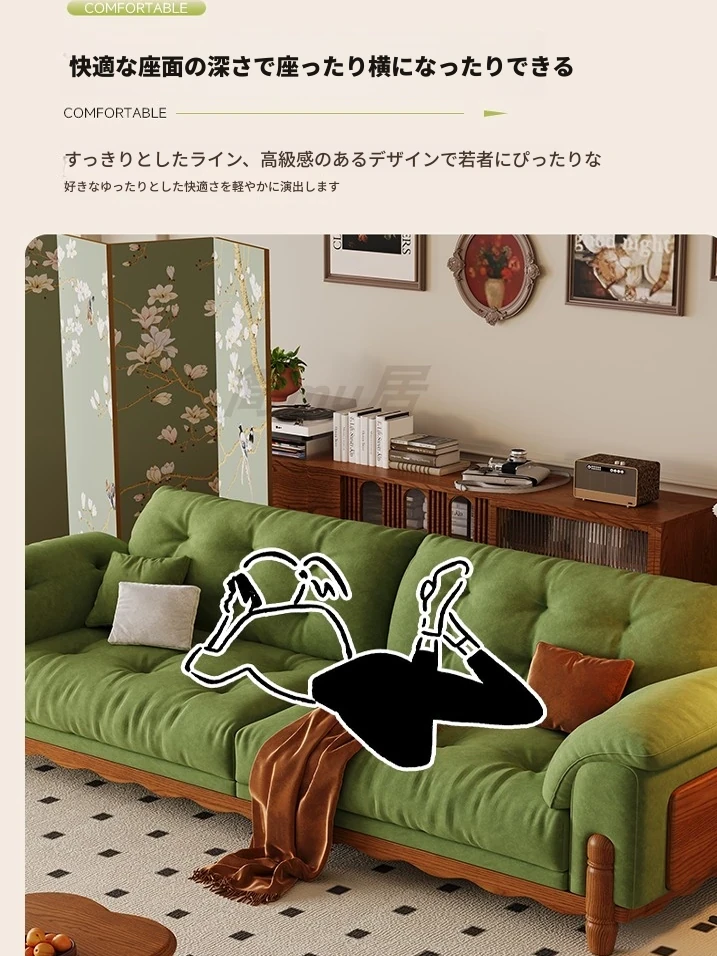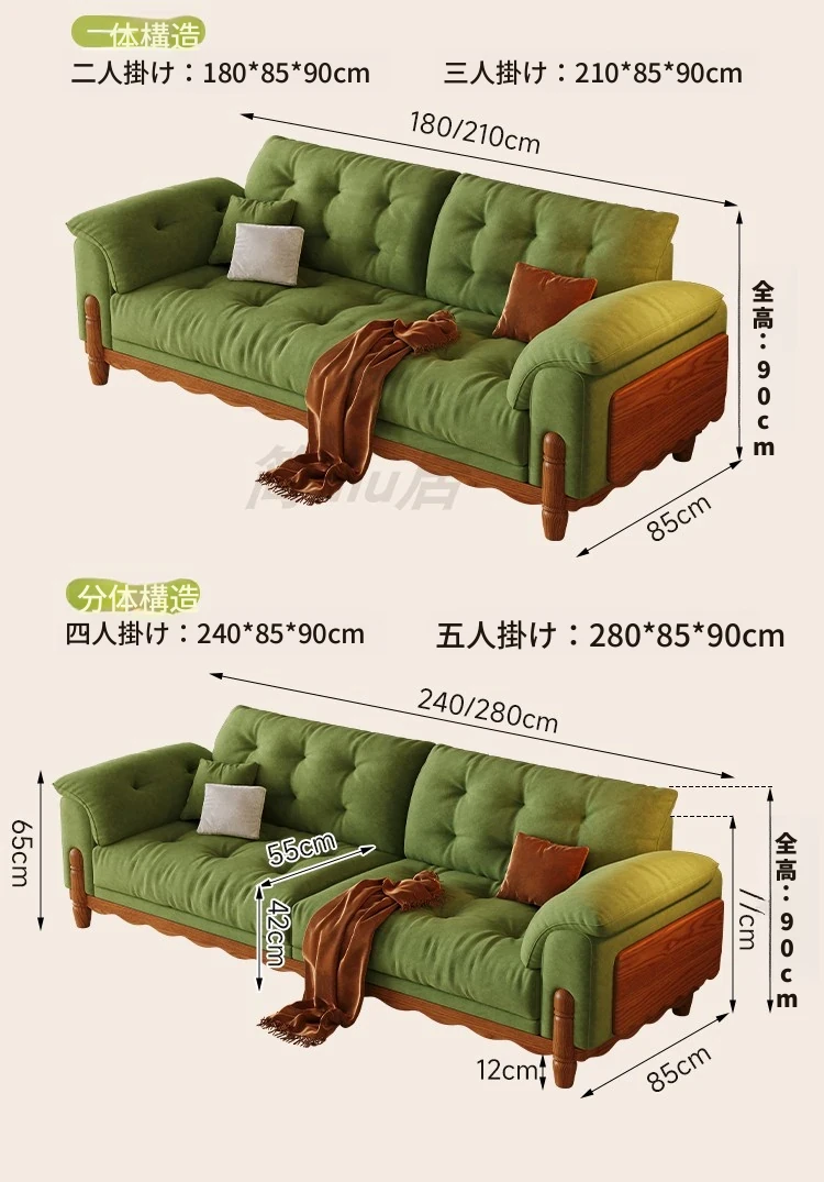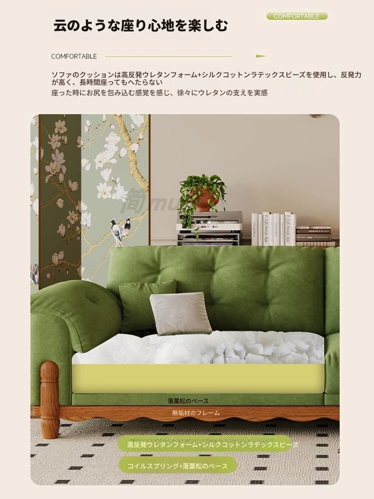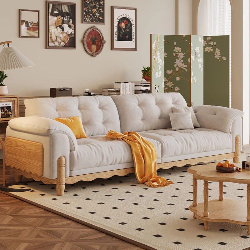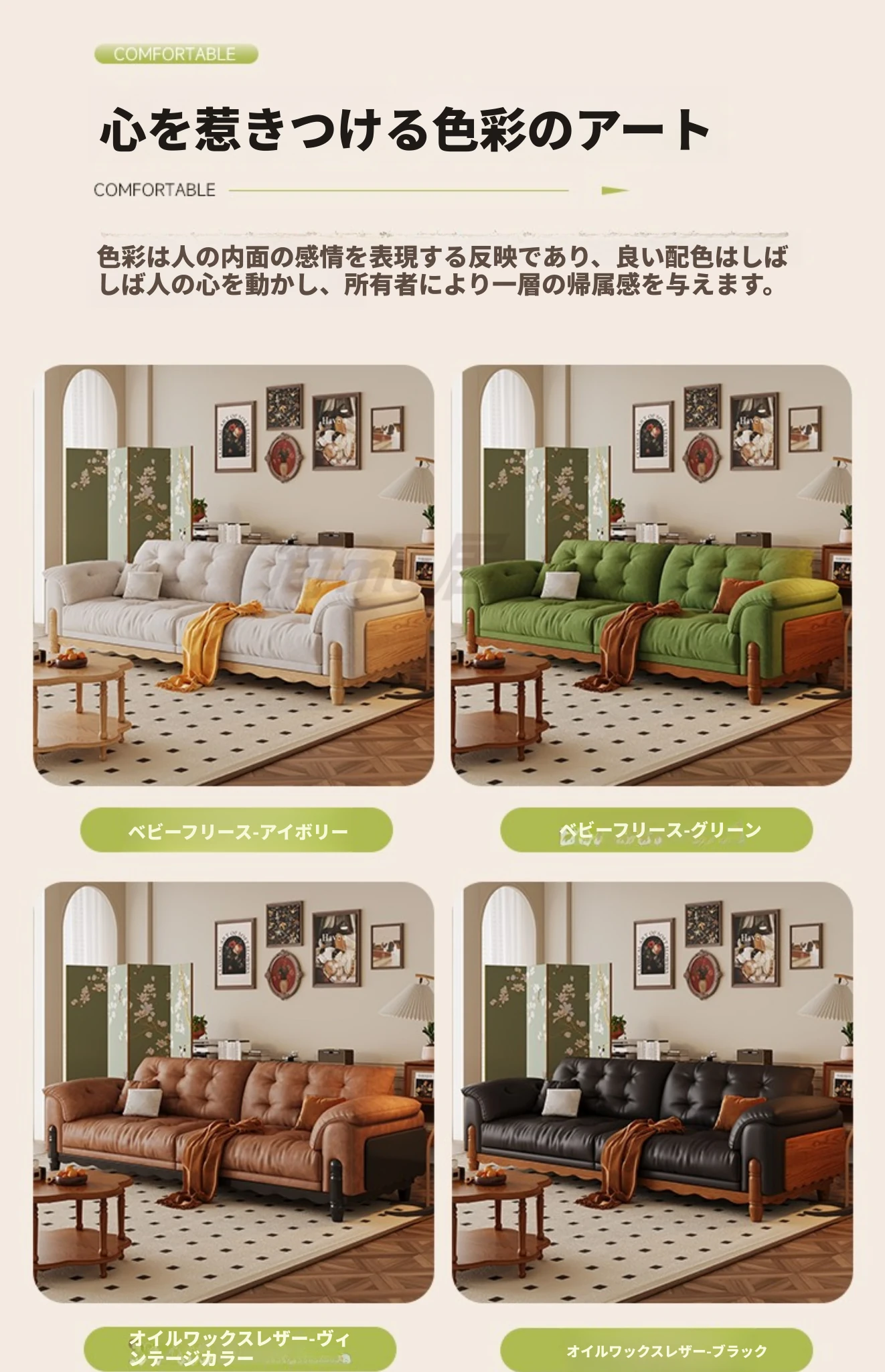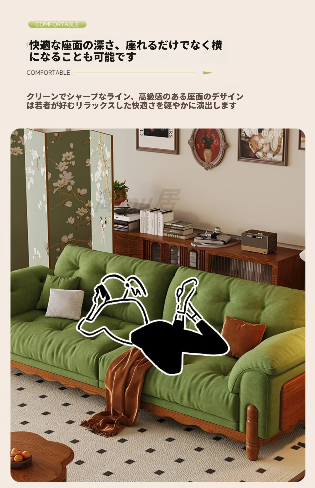2025年新作!贅沢なクリーム風ベビーフランネルソファ - モダンなデザイン、ハイスタンドホワイトアッシュ無垢材、心地よいファブリックでリビングを華やかに演出!